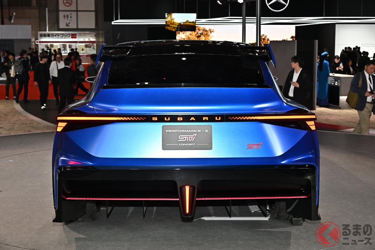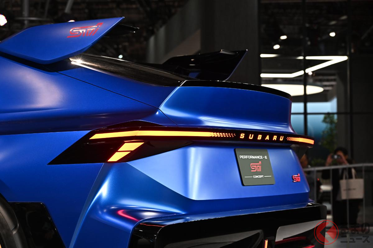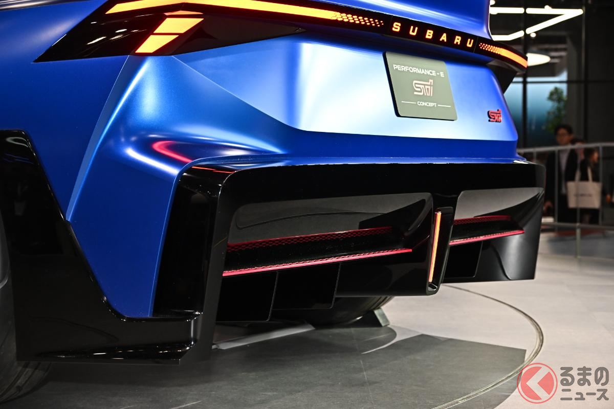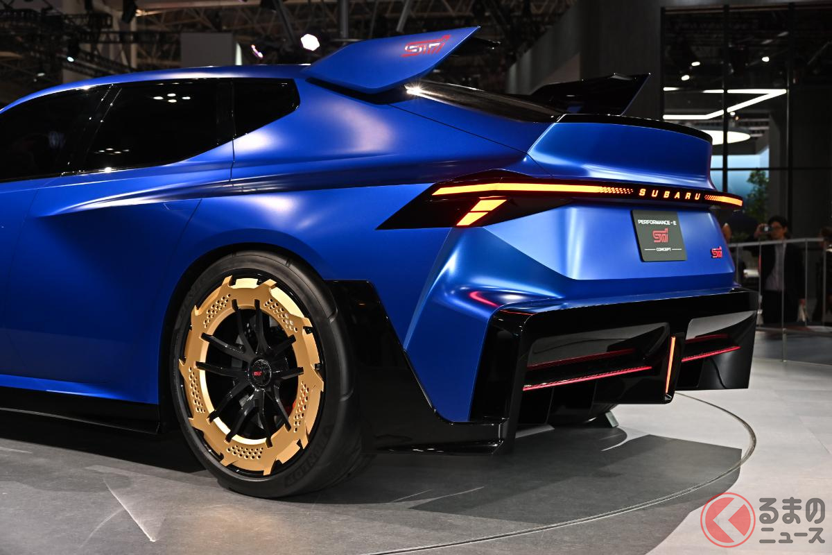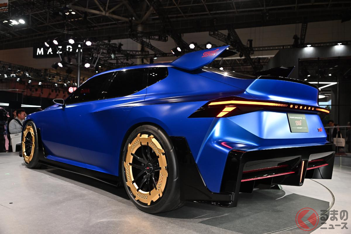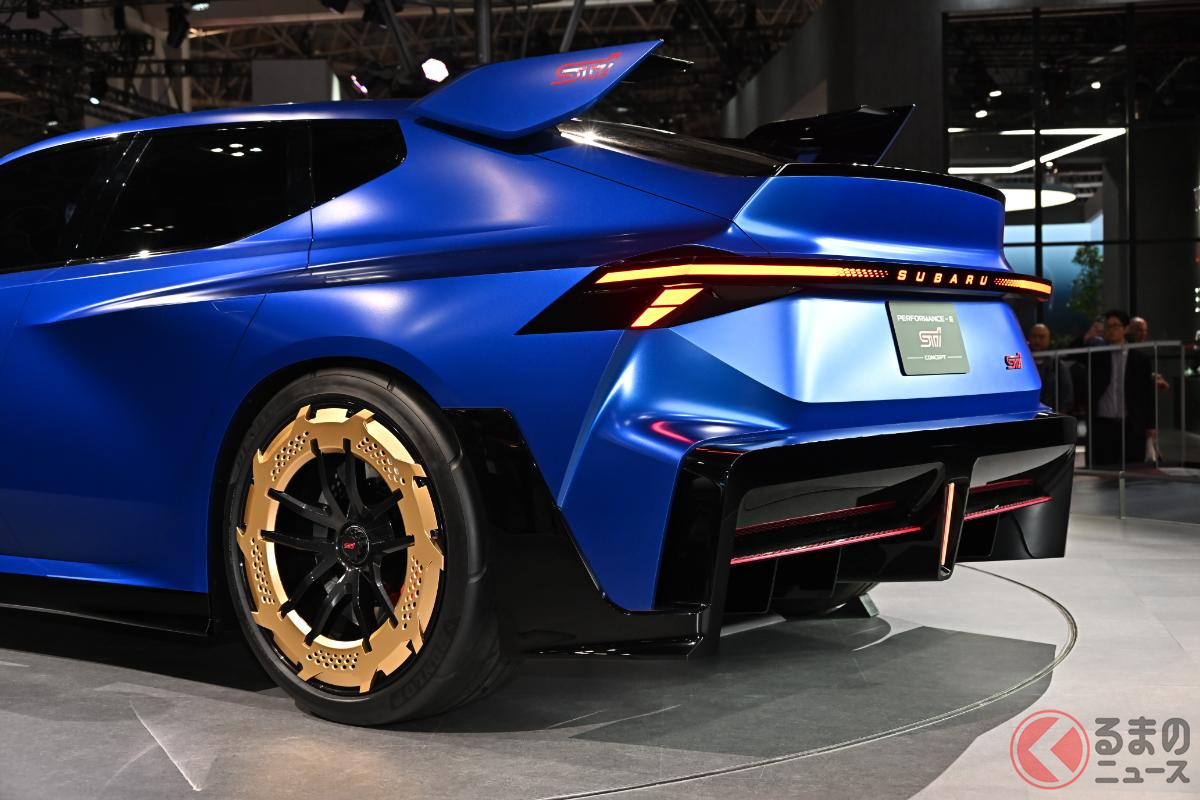 スバル新「“4WD”スポーツカー」世界初公開! 往年の「インプレッサ風」デザイン&“STIロゴ”採用に新型「WRX STI」を示唆!? スバルらしさ全開でカッコイイ「パフォーマンスE STI」って?