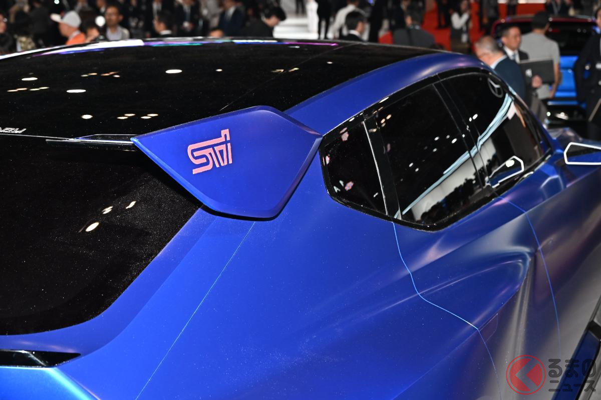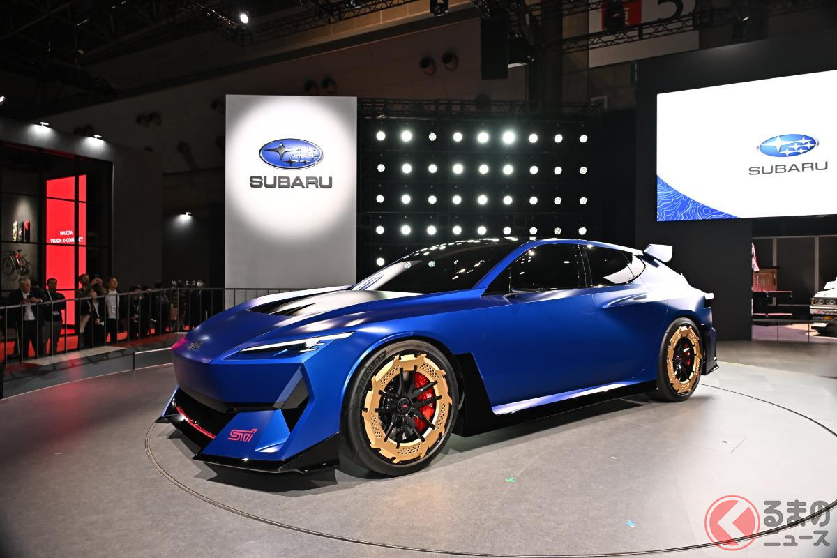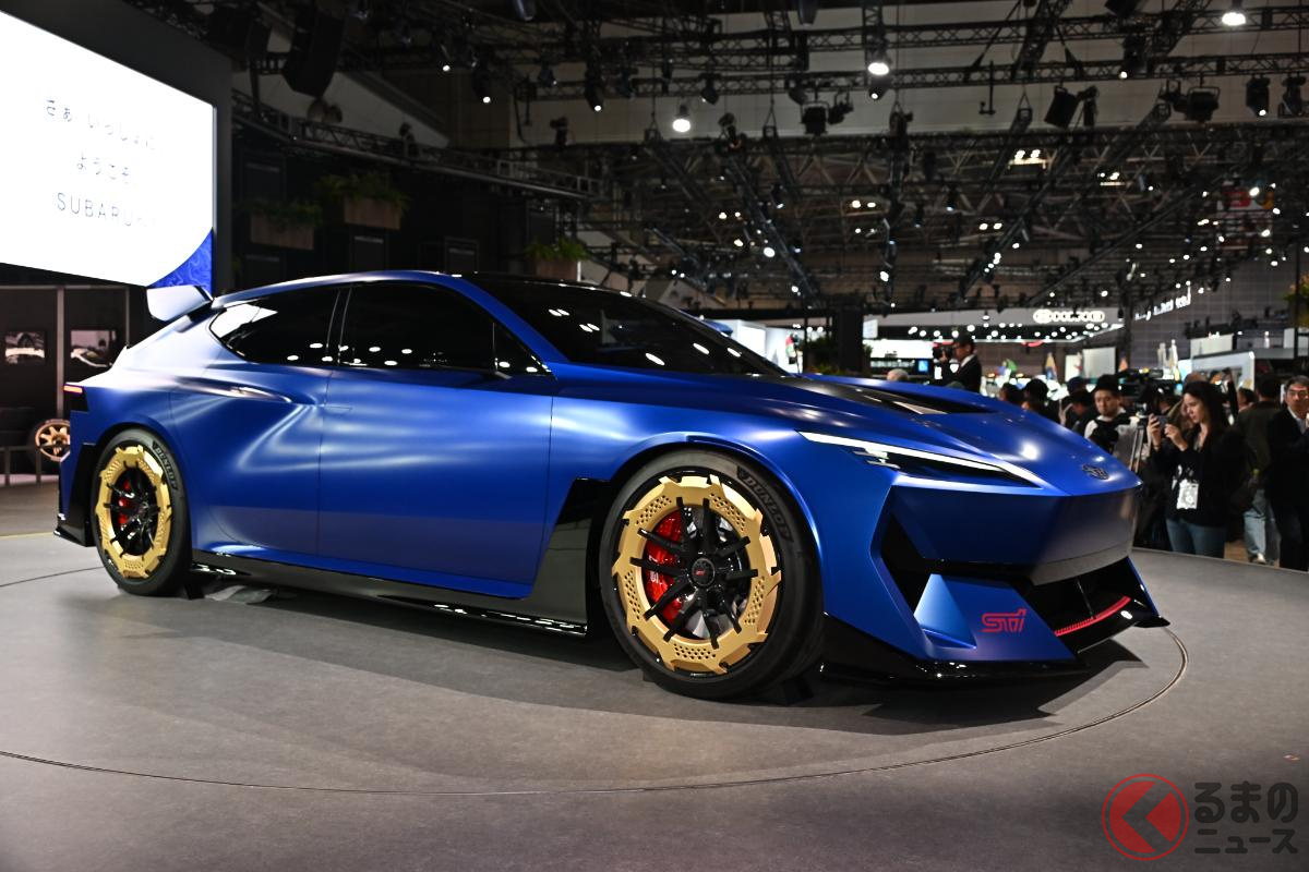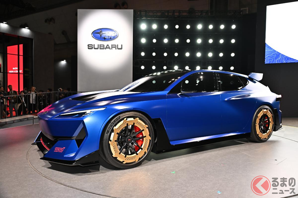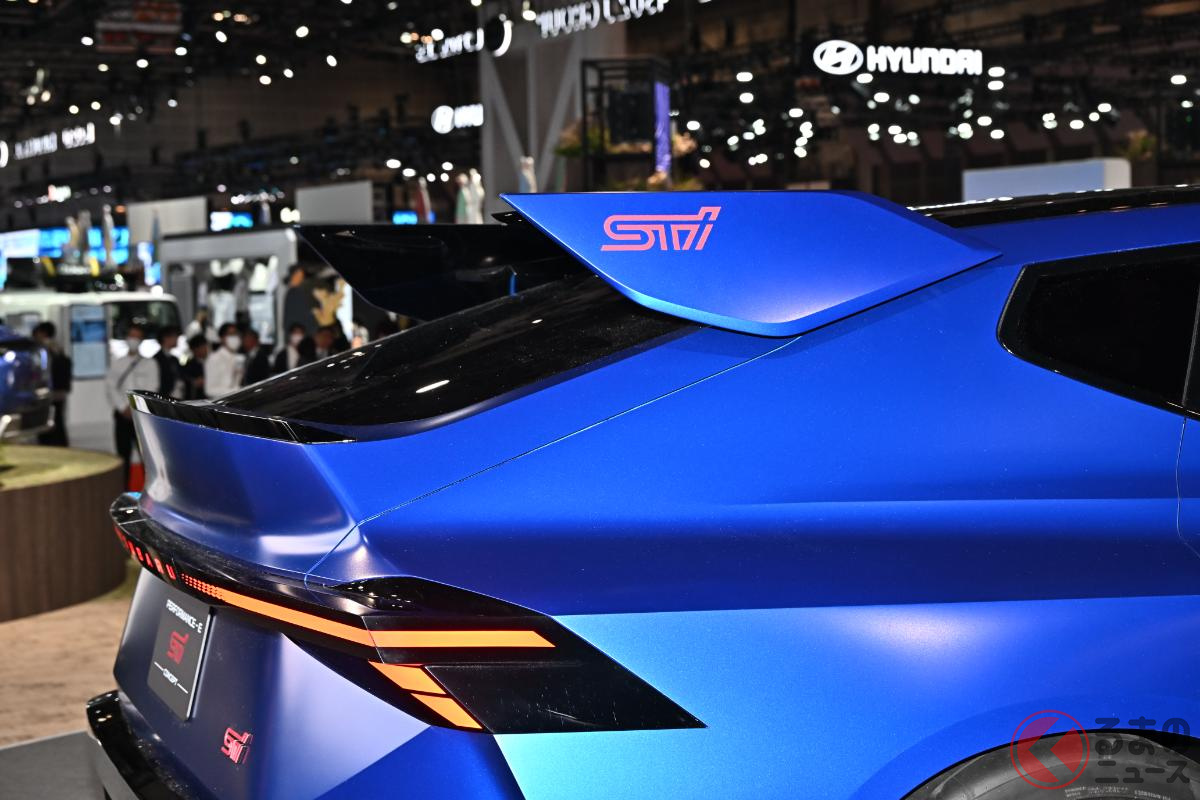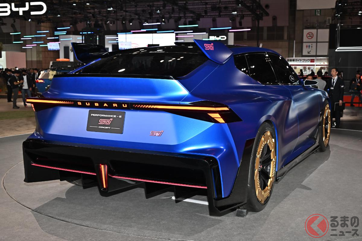 スバル新「“4WD”スポーツカー」世界初公開! 往年の「インプレッサ風」デザイン&“STIロゴ”採用に新型「WRX STI」を示唆!? スバルらしさ全開でカッコイイ「パフォーマンスE STI」って?