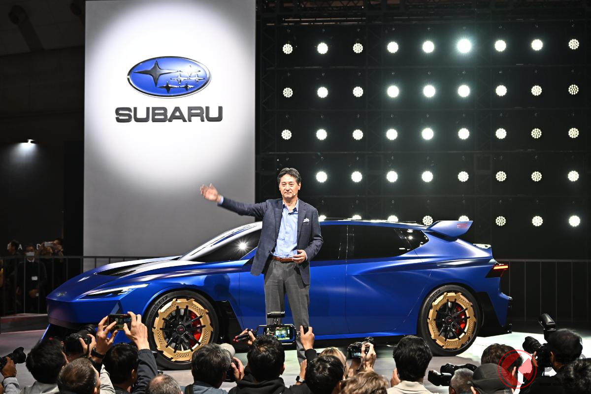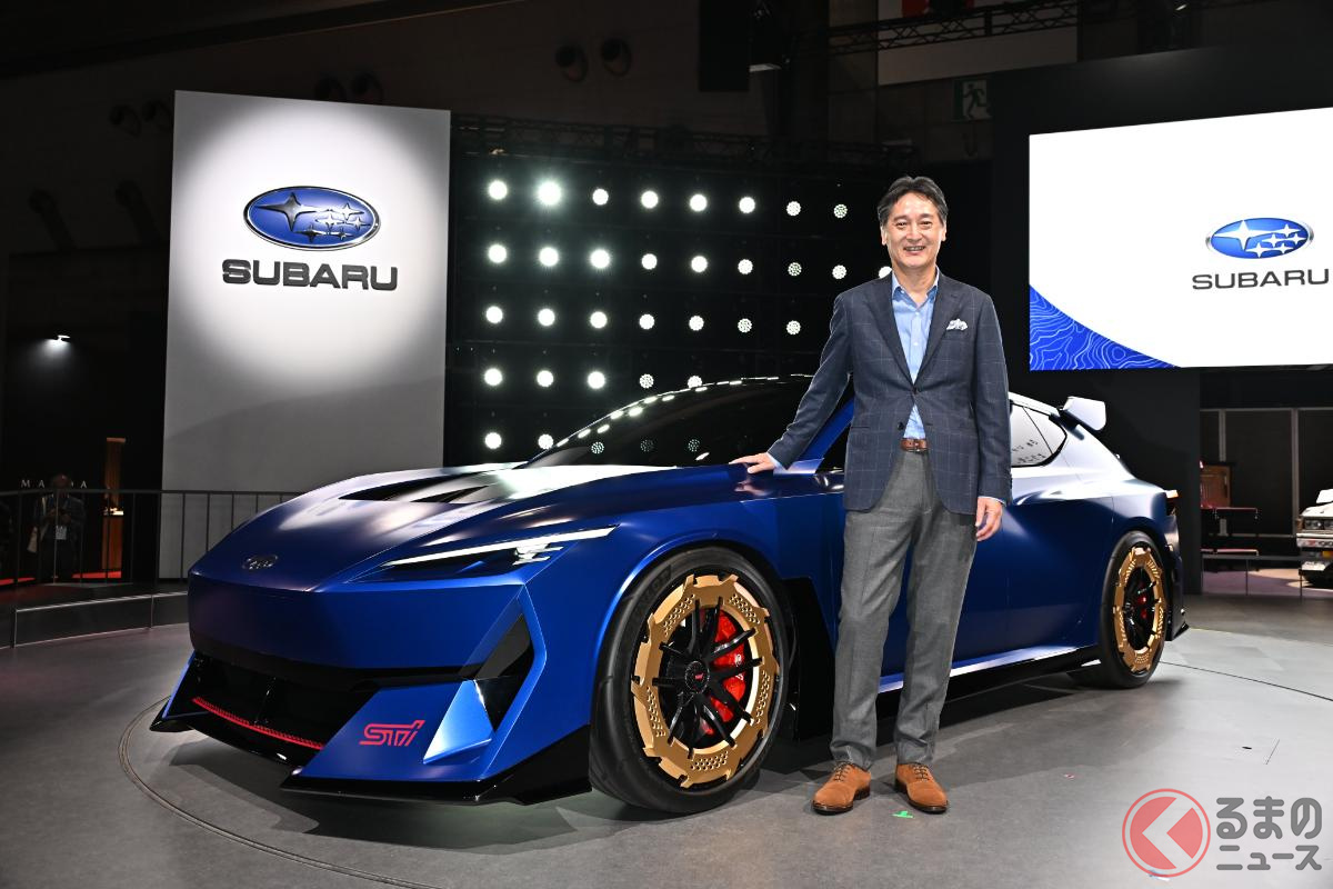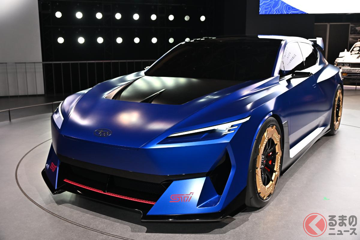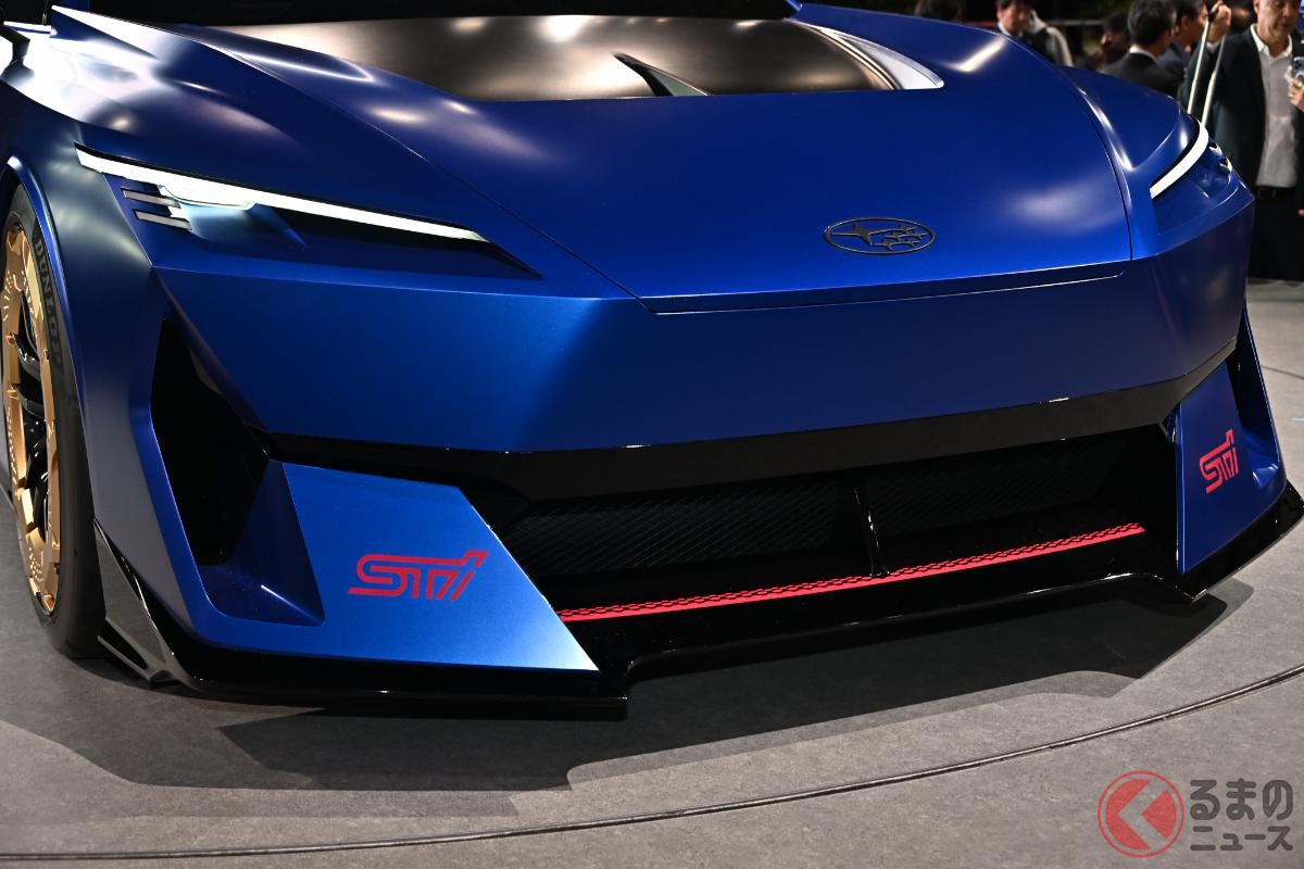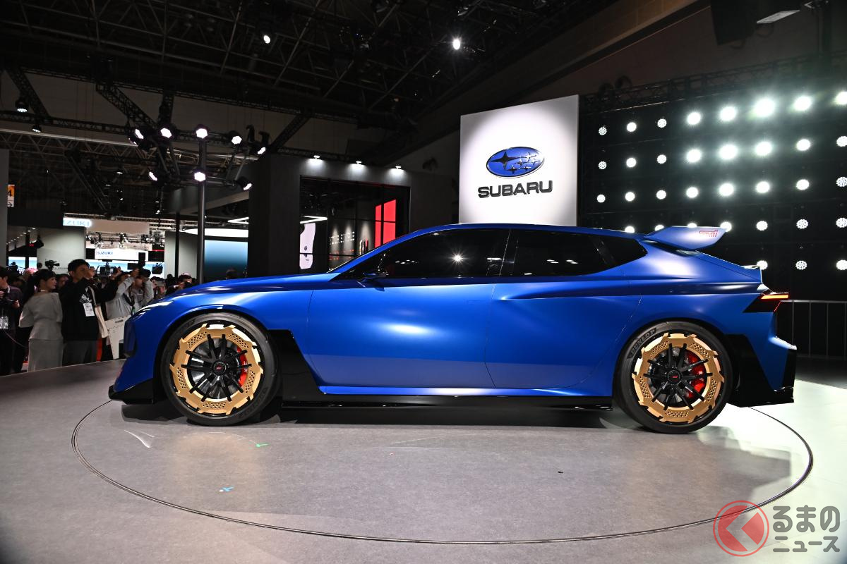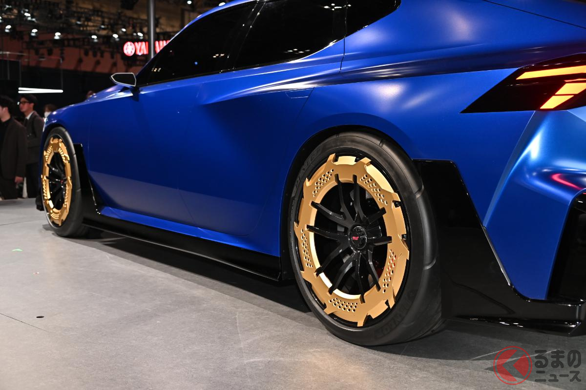 スバル新「“4WD”スポーツカー」世界初公開! 往年の「インプレッサ風」デザイン&“STIロゴ”採用に新型「WRX STI」を示唆!? スバルらしさ全開でカッコイイ「パフォーマンスE STI」って?