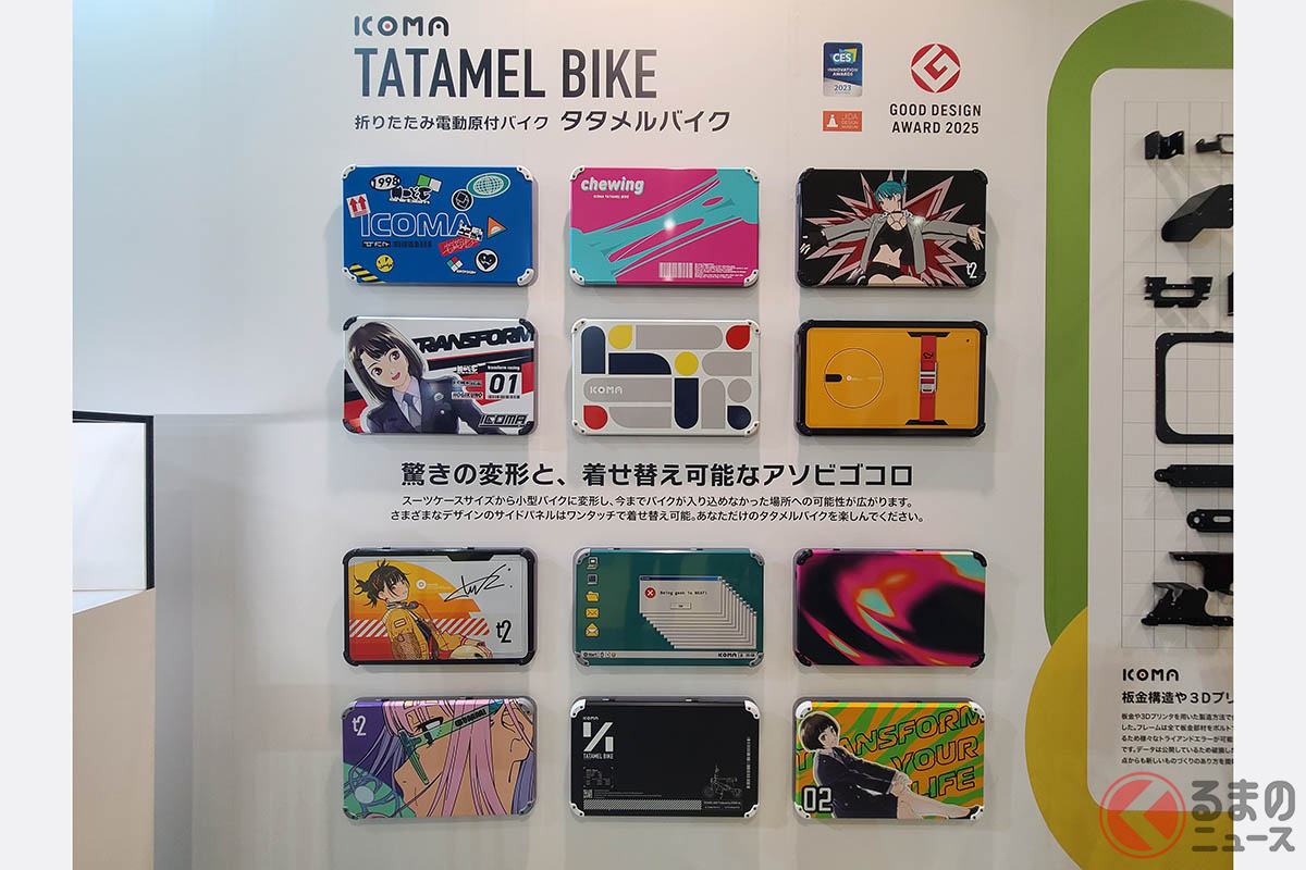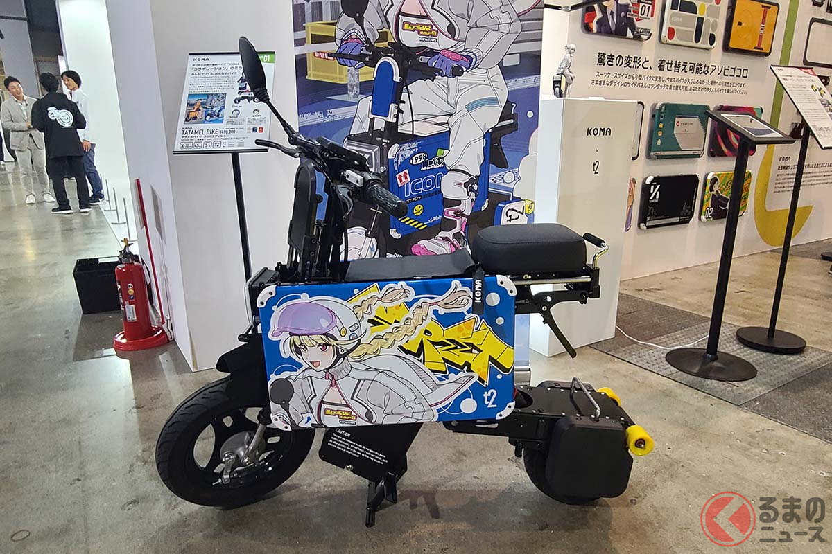 “トランスフォーム”する電動バイクの“新“モデル! ICOMA「タタメルバイク」の進化系「プラス」がジャパンモビリティショー2025に登場! その特徴は?