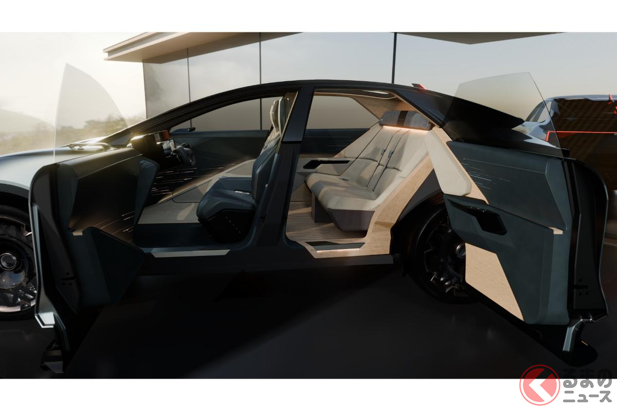 レクサス“新”「LS“クーペ”」初公開! 最上級の「観音開き・4ドアモデル」! 斬新すぎる“個別内装”採用の「新モデル」どんなクルマ?