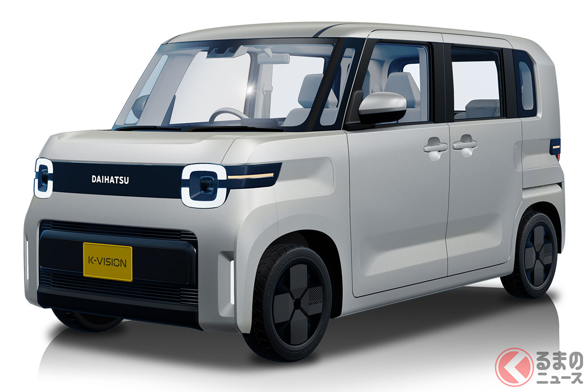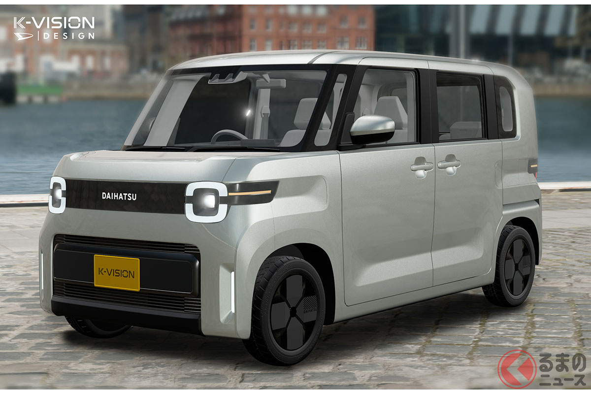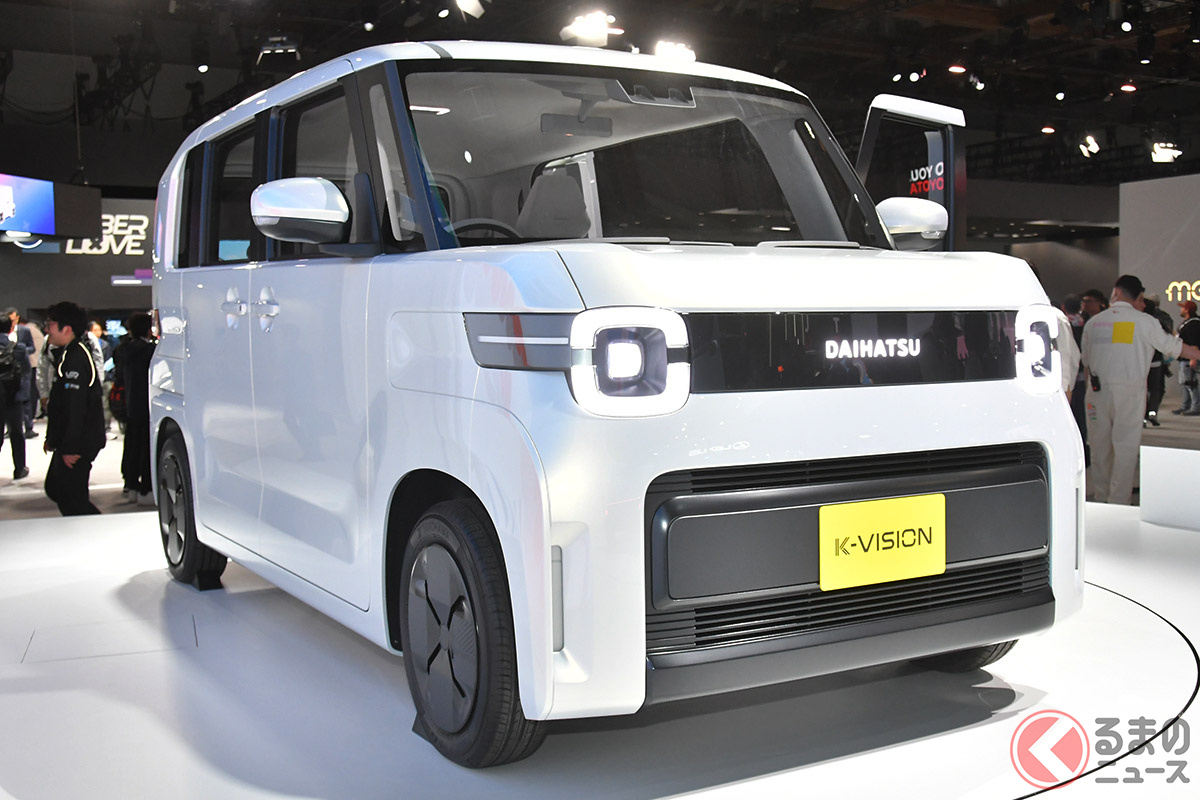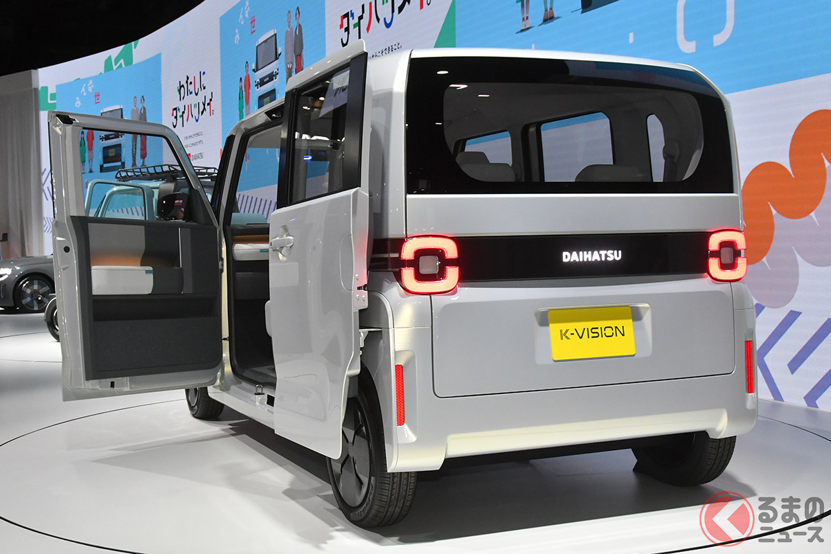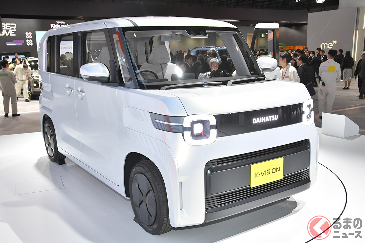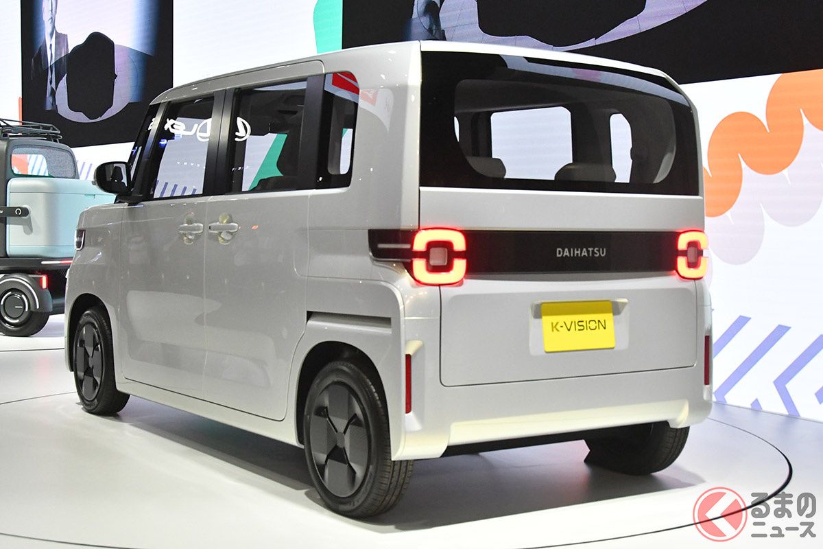 ダイハツ“新”「軽ワゴン」初公開! 大開口「スライドドア」&最新「ハイブリッド」採用! カクカクボディもイイ「K-VISION」何を示す?