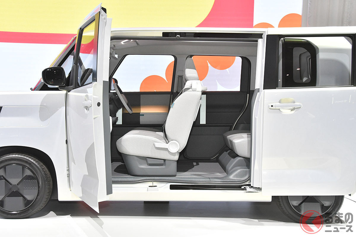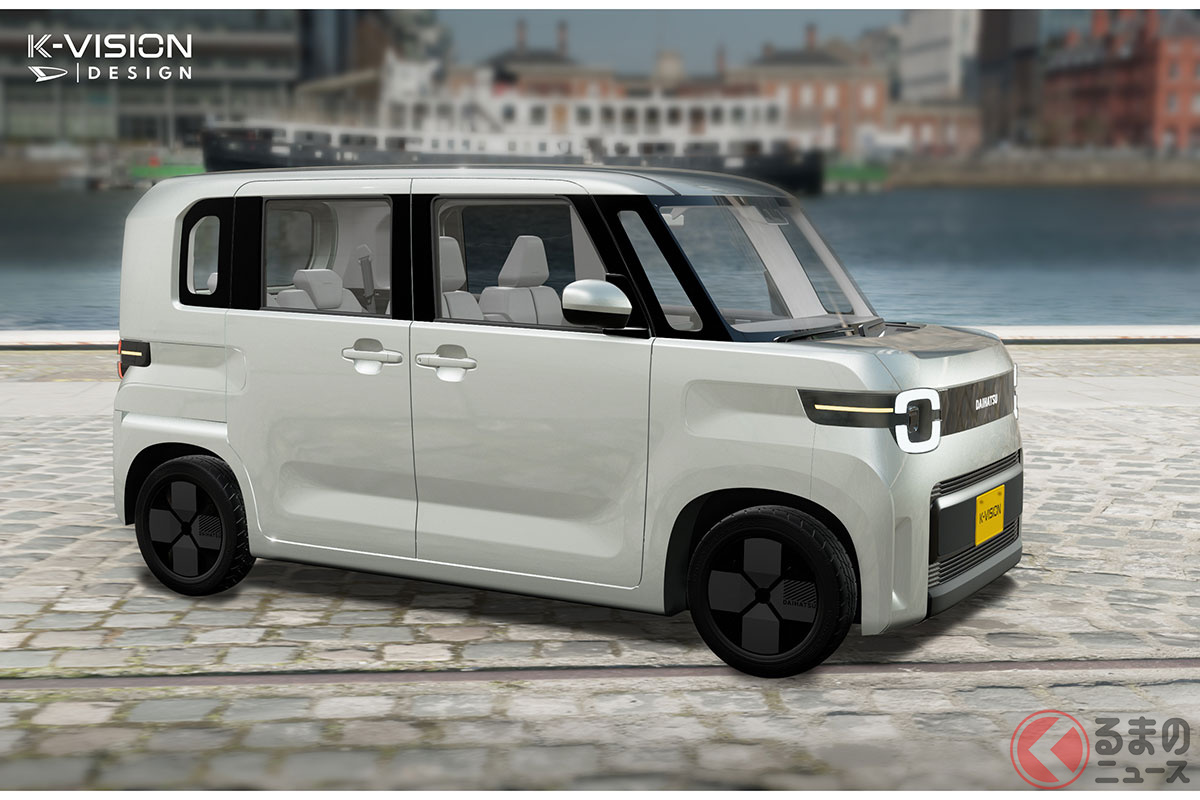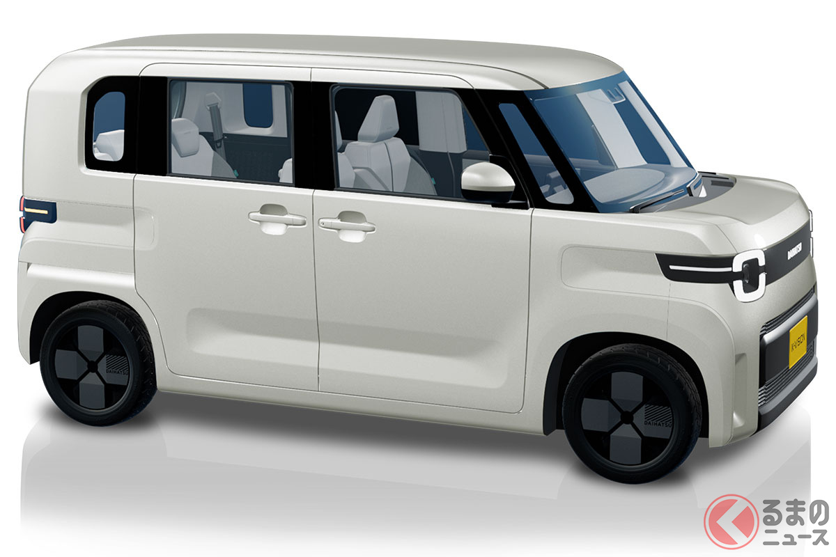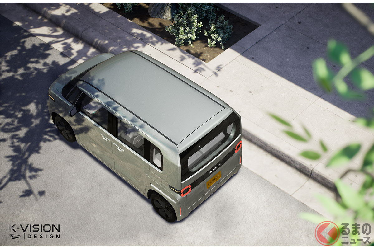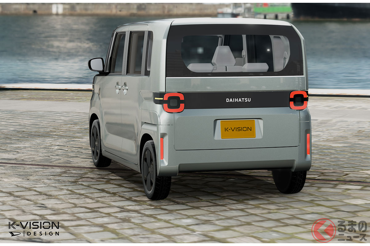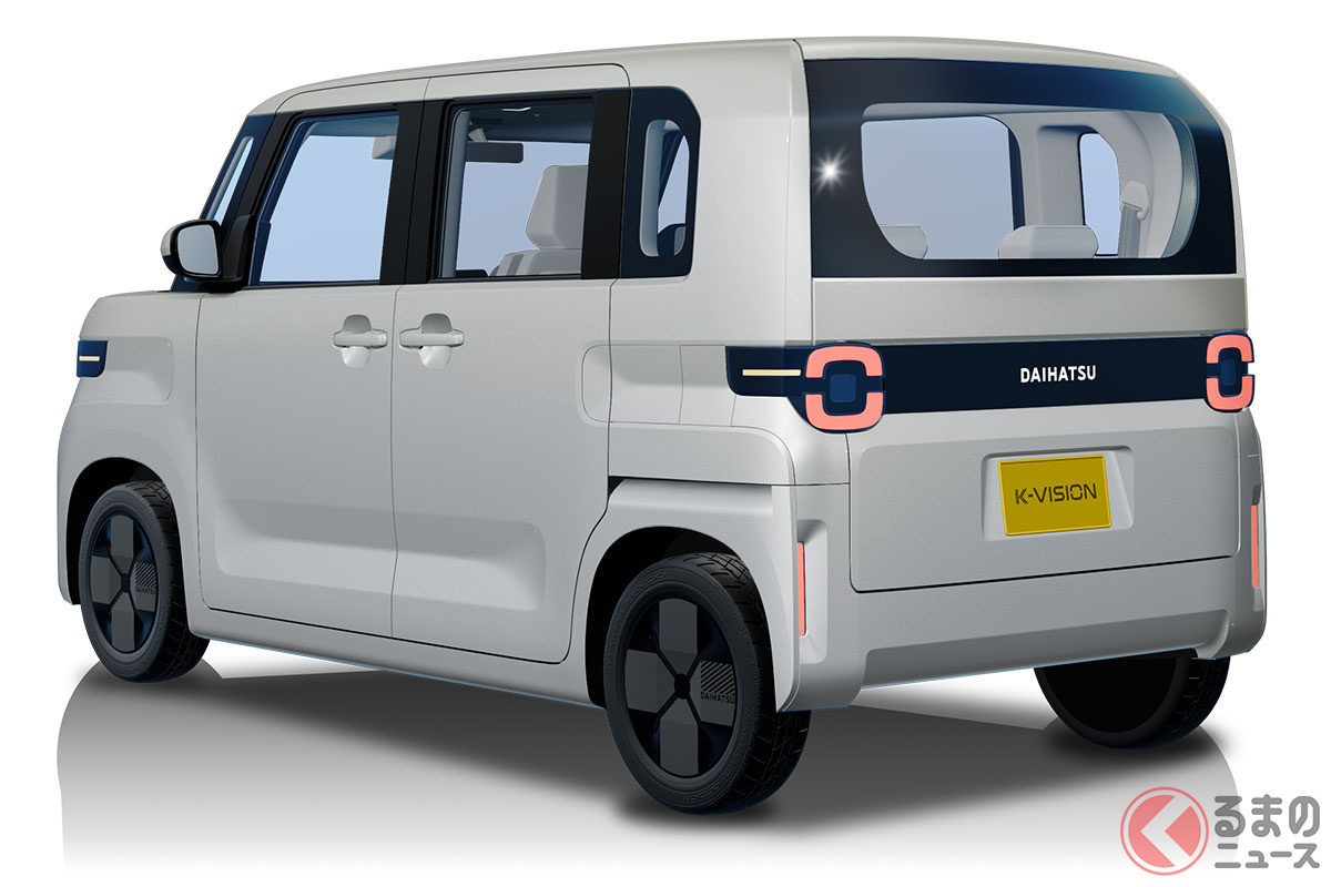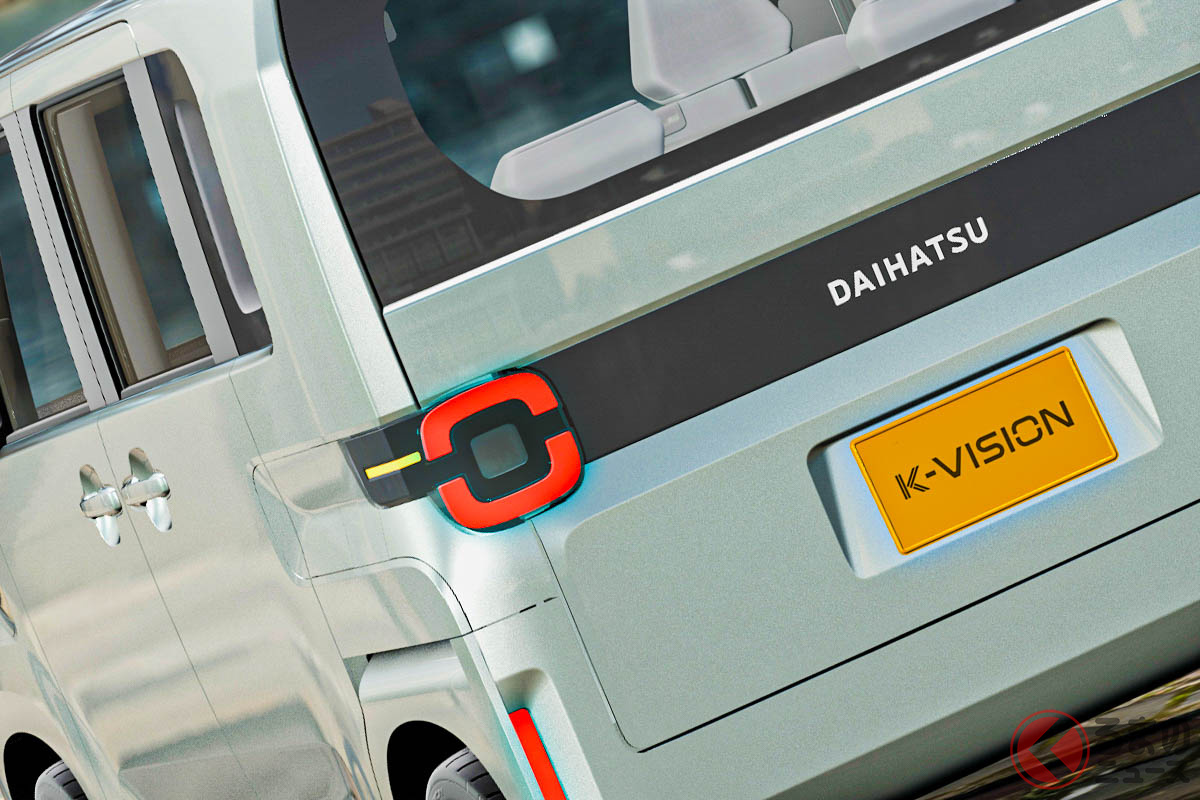 ダイハツ“新”「軽ワゴン」初公開! 大開口「スライドドア」&最新「ハイブリッド」採用! カクカクボディもイイ「K-VISION」何を示す?