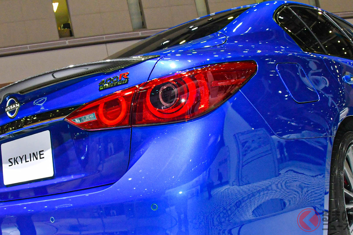 約693万円! 日産「“新”スカイライン」初公開! 400馬力超え「V6TT」×”後輪駆動”採用! スポーティな専用デザインもイイ「400R Limited」登場