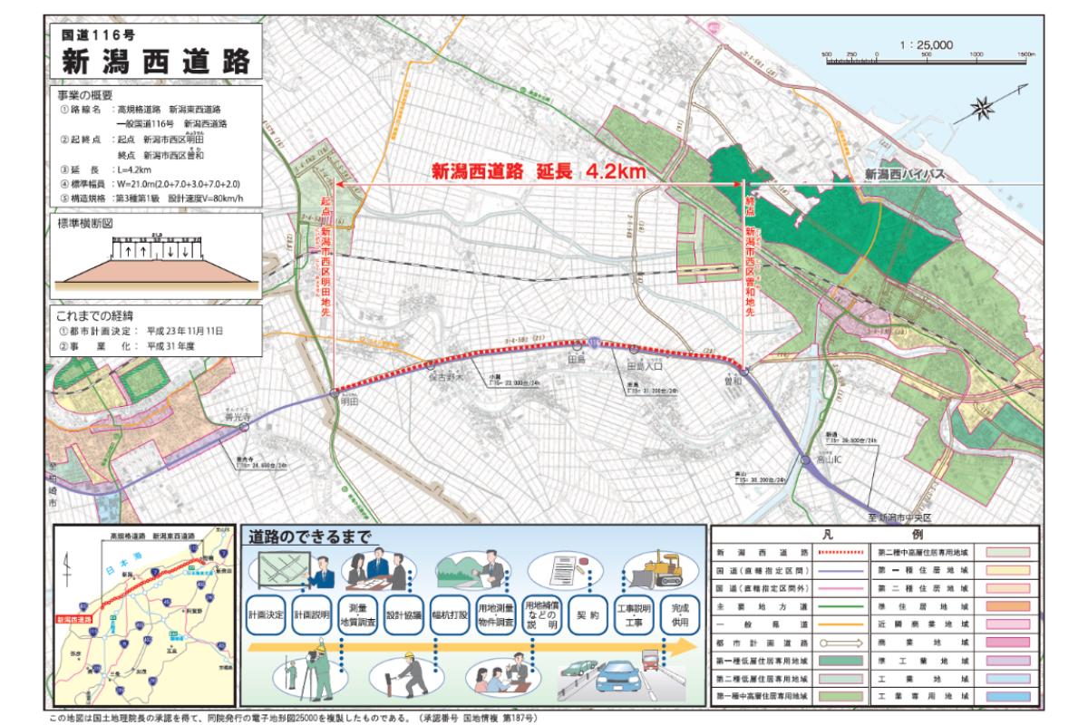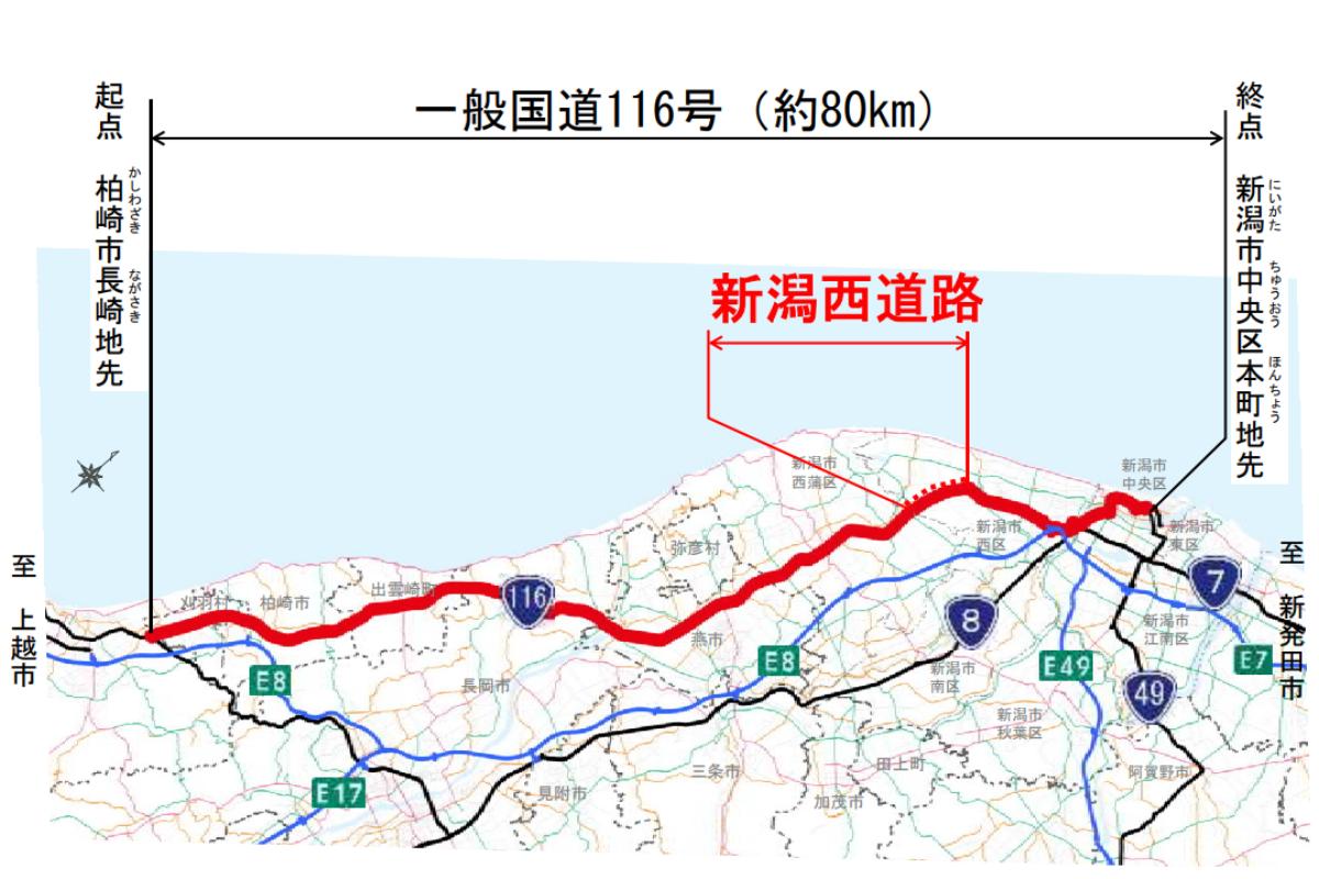 国土交通省 新潟国道事務所は、国道116号「新潟西道路」の工事を着手すると発表しました。