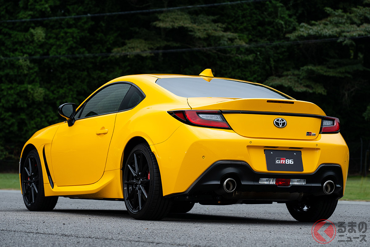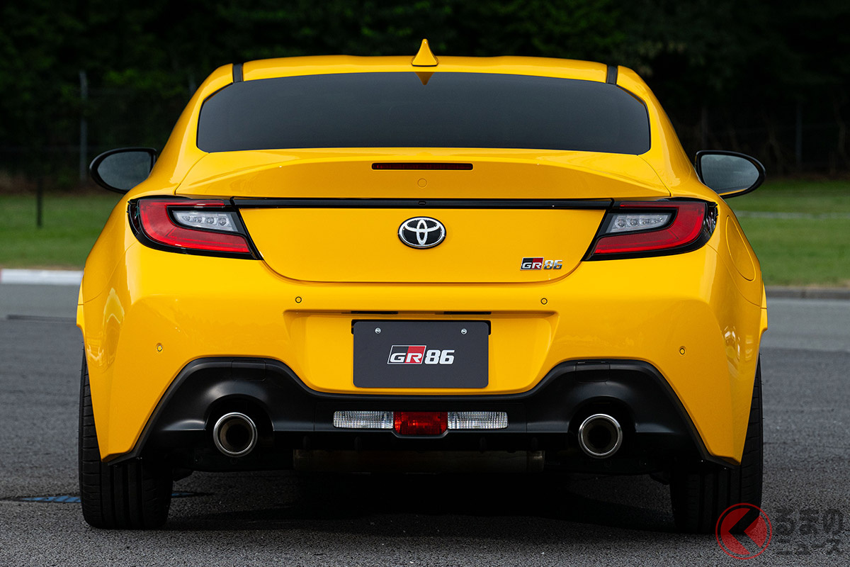新車約558万円! トヨタ新「スポーツカー」登場! ゴツい「4本出しマフラー」×初代オマージュの“鮮烈カラー”がカッコいい! 「GR86 ゆずエディション」米国仕様とは!