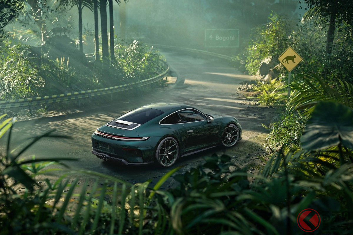 500馬力超えד6速MT”! 新「“2ドア”スポーツカー」発表! 特別な「グリーン×ブラウン内装」がカッコいい! “ネコ”がモチーフのポルシェ「911 GT3 Ocelot」米国で登場