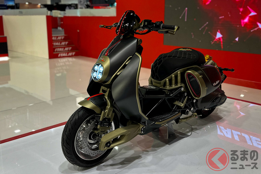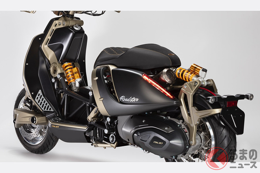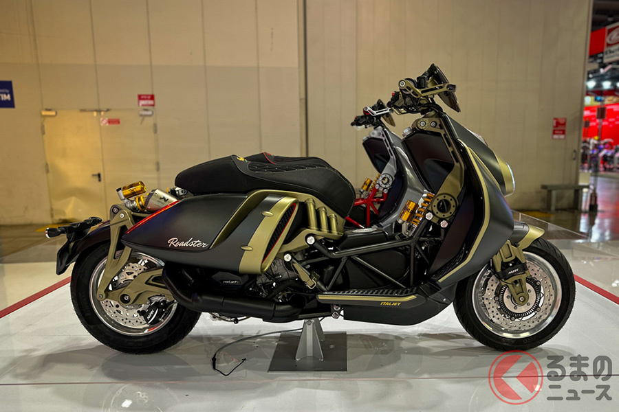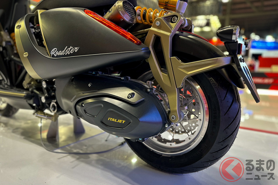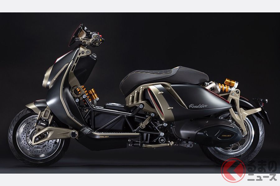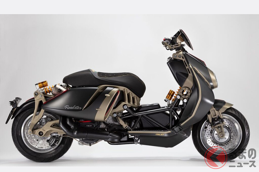 新型「ロードスター400」世界初公開! 「クラシック」デザイン×400ccパワフルエンジン搭載! 個性炸裂の“新たなスクーター”イタルジェットがイタリアで披露