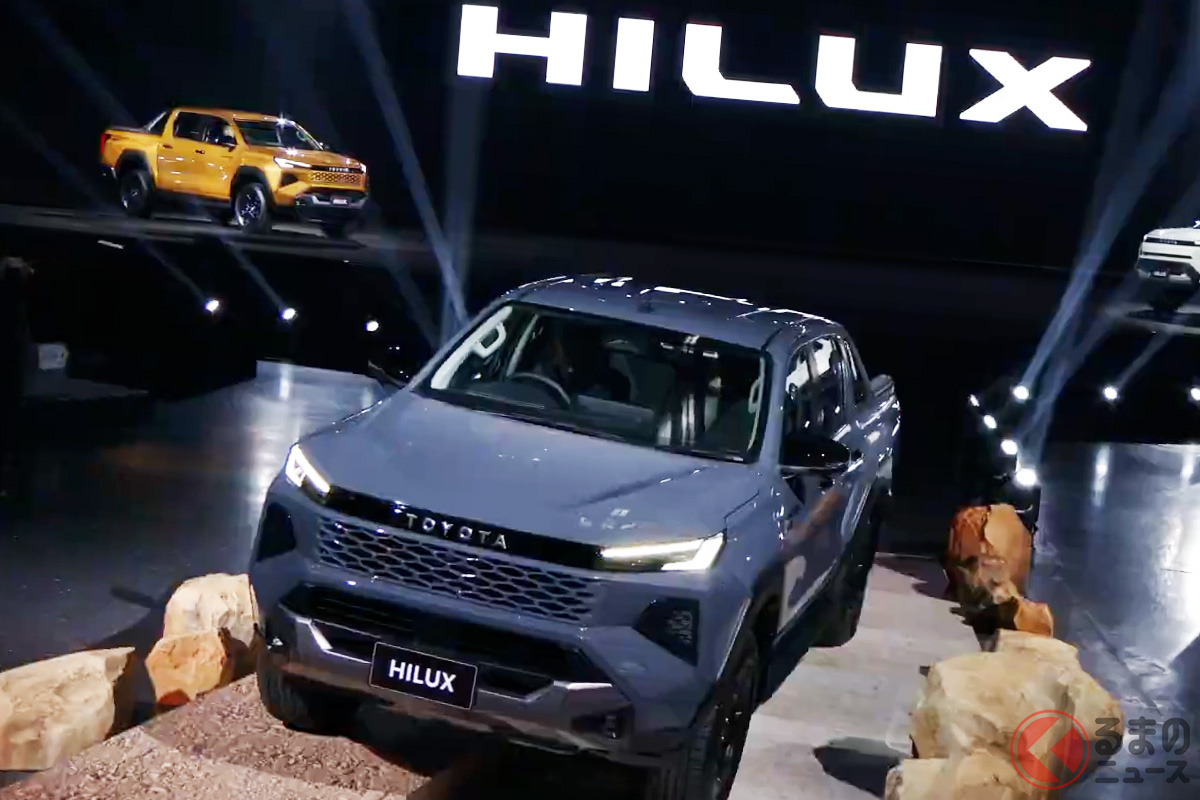 “10年ぶり全面刷新”のトヨタ新型「ハイラックス」初公開! パワフルな「2.8ディーゼル」&「ハイブリッド」設定! 精悍顔に進化した“最強ピックアップ”欧州登場へ