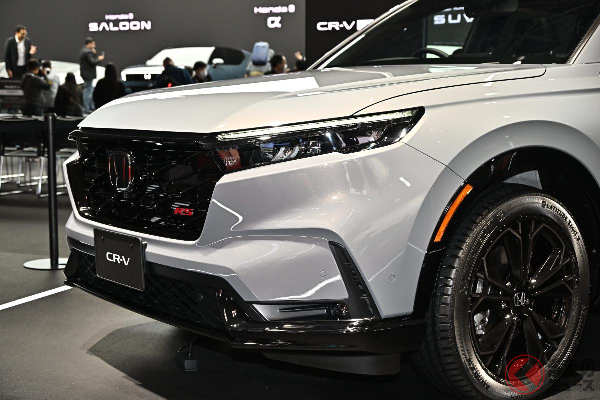 ホンダの新型「“5人乗り”ミドルクラスSUV」まもなく発売! 全長4.7m級の「ちょうどイイ上級モデル」! 精悍スポーティ「RS」も設定の新型「CR-V e:HEV」今冬発売へ