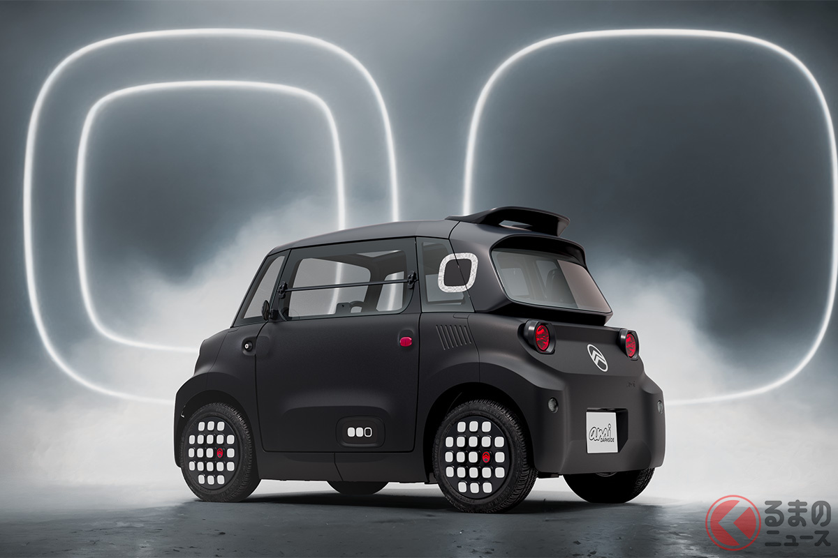 新車158万円! 新「“免許不要”のコンパクトカー」発表! 「斬新ドア」採用の“2人乗り”仕様! 名車オマージュ&専用ブラック仕立てがイイ! シトロエン「アミ ダークサイド」仏に登場!