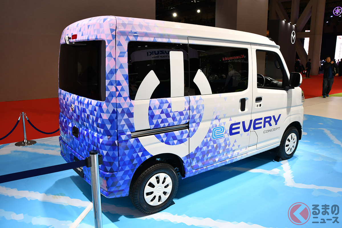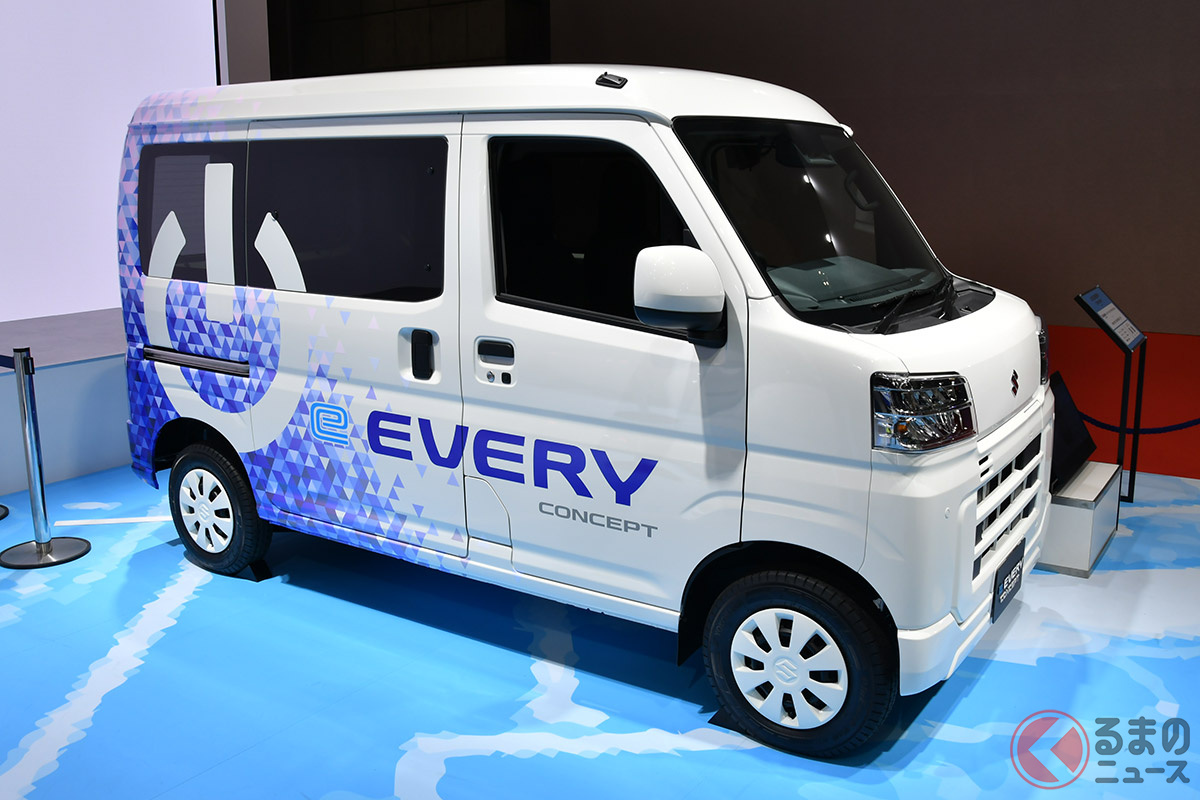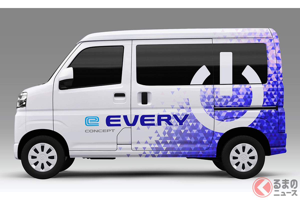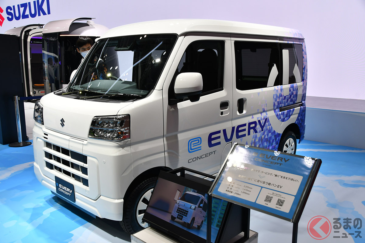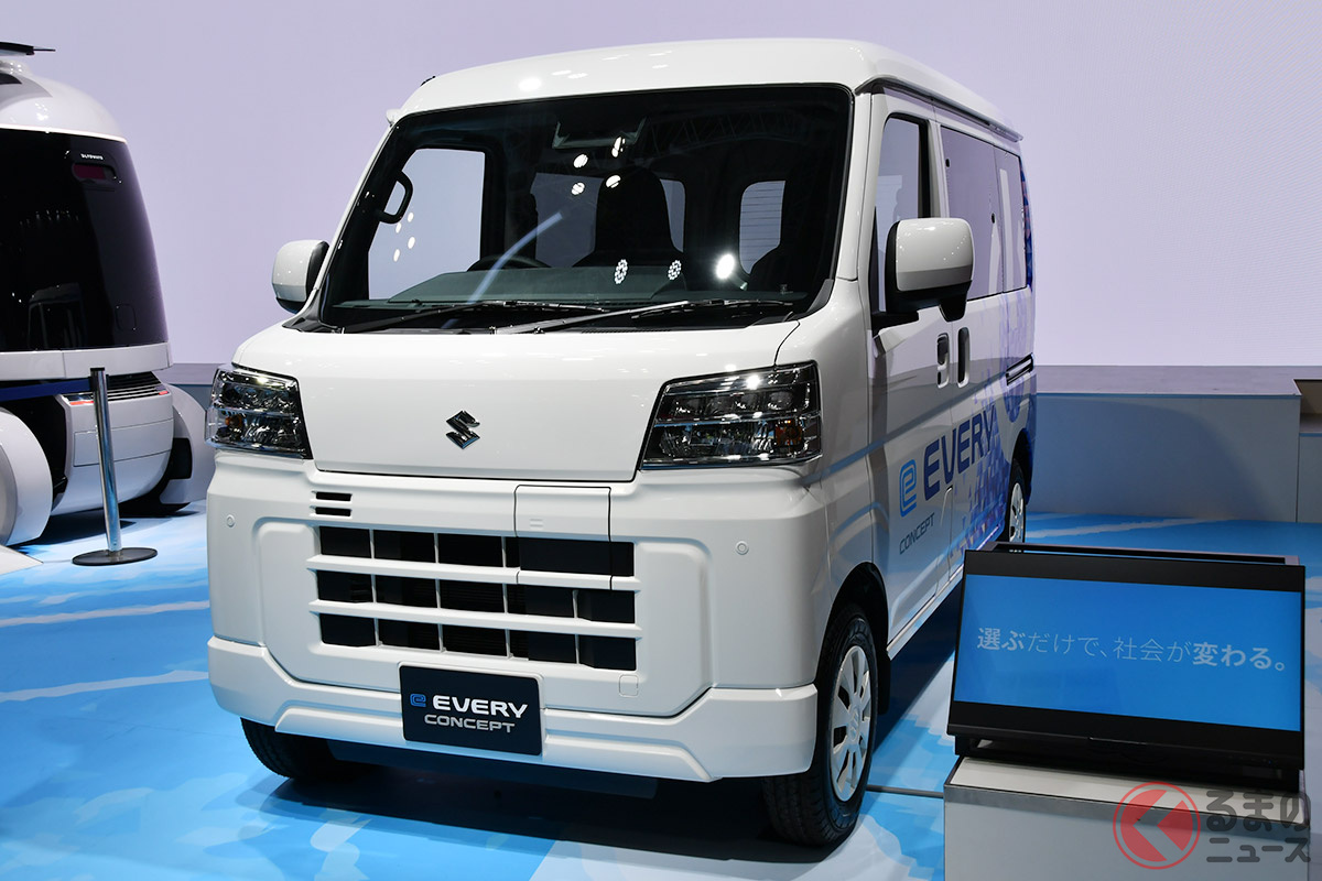 スズキは「ジャパンモビリティショー2025」にて「eエブリイ(イーエブリイ)」を参考出品しました。これは、トヨタ・ダイハツ・スズキの3社が共同開発している軽ワンボックスバンのBEV仕様ですが、スズキは独自のサービスを展開するようです。