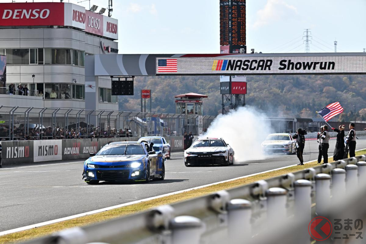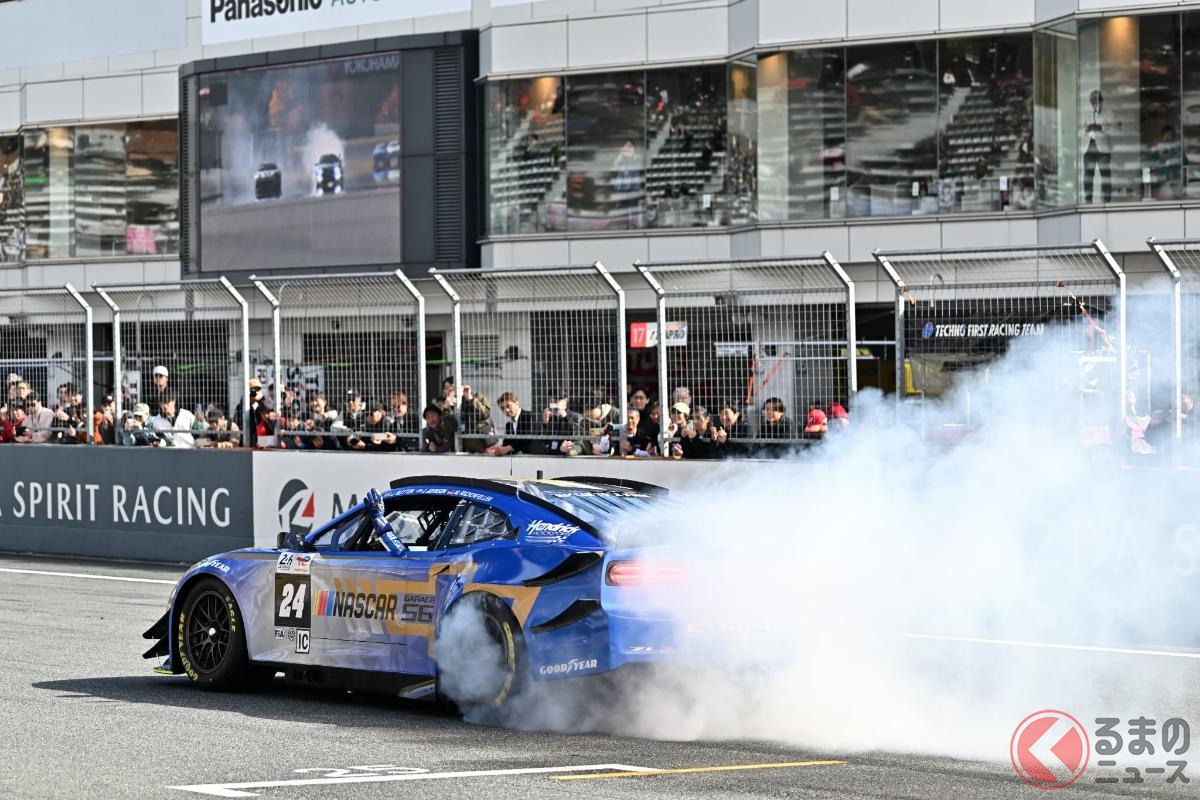 富士スピードウェイで開催のS耐最終戦でNASCARがデモランを披露 。日本自動車会議所の豊田章男会長とグラス駐日米国大使が、豊田会長運転のF-150で登場し、「start your engines!」とコール。会場を沸かせました。