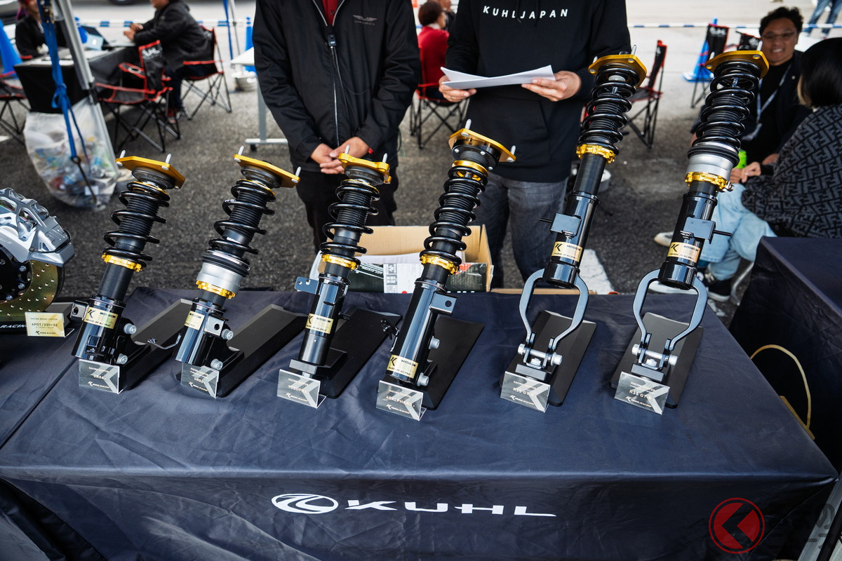 カスタマイズパーツ販売などを手がける「KUHL(クール)」グループが冠スポンサーを務めるイベント「KUHL RACING presents 2025年D1グランプリシリーズ 第9戦&第10戦 in お台場」が、2025年11月15~16日に開催されました。ドリフト競技の傍らで、オリジナルの車高調キットの展示・販売や、それらのアイテム類を装着したコンプリートカーなどを展示する「KUHLミーティング」も行われました。