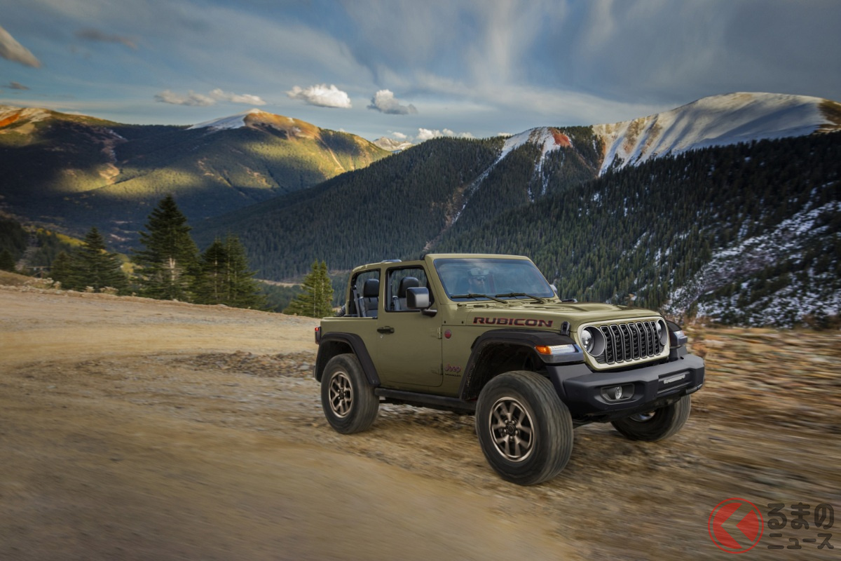 2リッターターボ搭載で「272馬力」! 新「“四駆”SUV」発表! 全長4.3m級のショートボディに「レトロ」顔&特別な「グリーン」採用! “2ドア”仕様のジープ「ラングラー ルビコン」登場