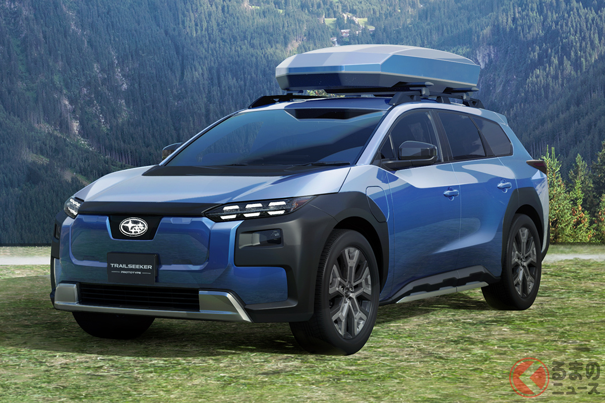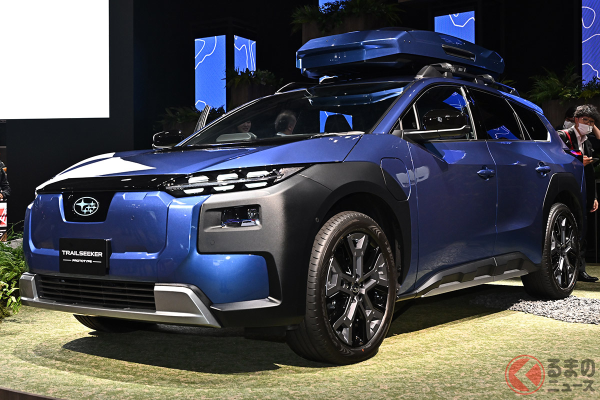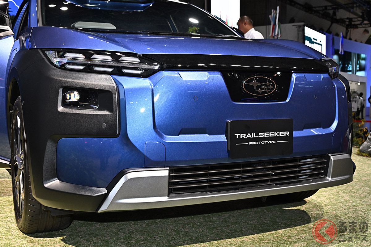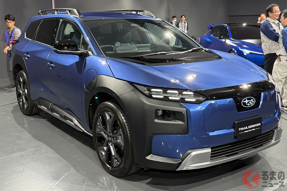 スバルがBEV第2弾「トレイルシーカー」のプロトタイプを「ジャパンモビリティショー2025」で初公開しました。「ソルテラ」ベースながらリアを延長し、「アウトバック」並の積載力を実現。前後167kWモーター搭載で高性能化し、航続700kmを目指します。