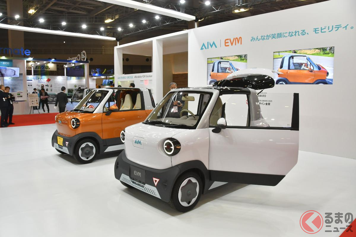 全長2.5m級! 超小型「“2人乗り”軽乗用車」に注目! 後輪駆動の“快速”性能×解放感で「十分に満足です」! 精悍「シーサー」顔もカッコいい「ちょうどいいサイズ」エイム「EVM」がスゴい