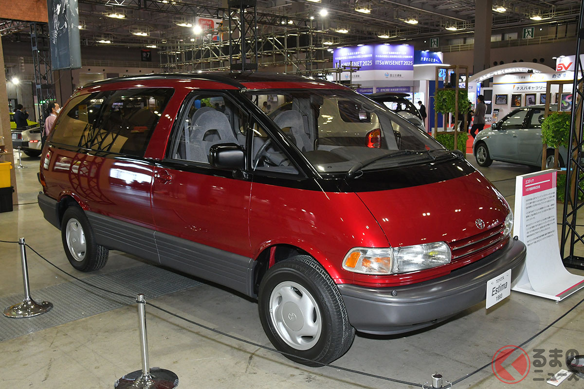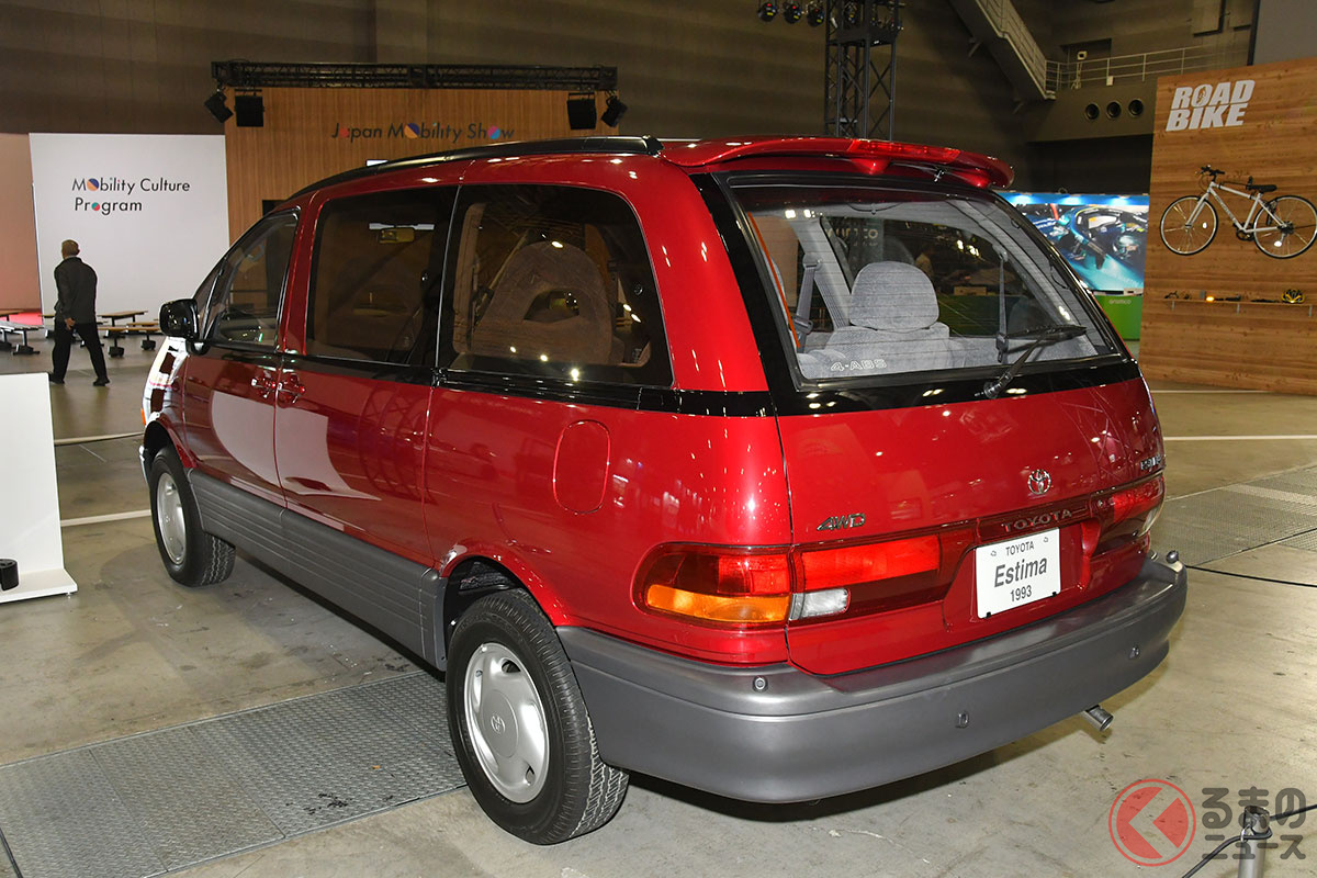 トヨタ「斬新“タマゴ型”ミニバン」が凄かった! “ほぼスポーツカー”な「MRレイアウト」×スーパーチャージャー搭載で「復活」求める声も? JMSに出現した「初代エスティマ」を振り返る