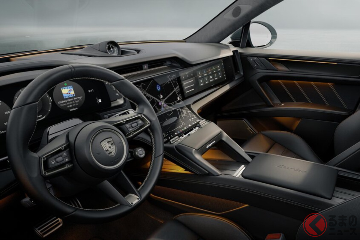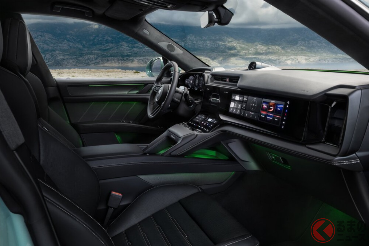 「1100馬力」超え! 新型「“5人乗り”SUV」世界初公開! スーパーカー並スペックの「高性能モデル」! 斬新「曲がってるモニター」×可変“ウイング&エアロ”がスゴいポルシェ「カイエン エレクトリック」欧州で登場