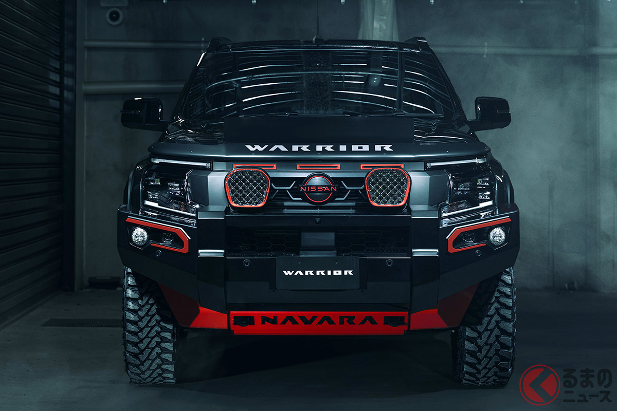 日産「新型“5人乗り”本格四駆」世界初公開! 強化ブルバー×「溶岩レッド」アクセントがカッコいい! 極限の“走破性”実現した「ナバラ PRO-4X ウォーリア」豪州モデルがスゴい!
