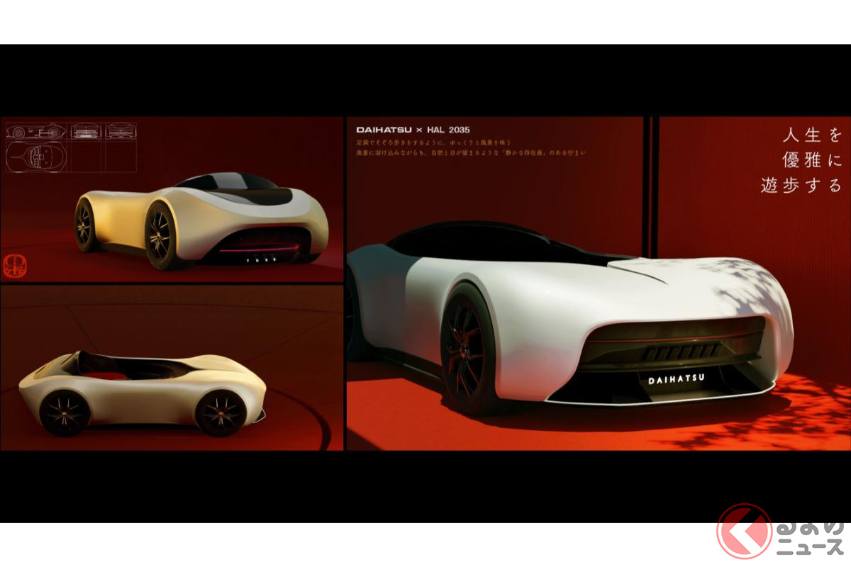 2025年11月20日、ダイハツ工業と専門学校HAL(東京・大阪・名古屋)は、量産車先行開発をテーマとした産学連携プロジェクトを実施したと発表。同プロジェクトで登場したコンセプトカーを初公開しました。中でも注目はロングノーズのデザインが美しい新たなコンセプト「遊歩車」です。