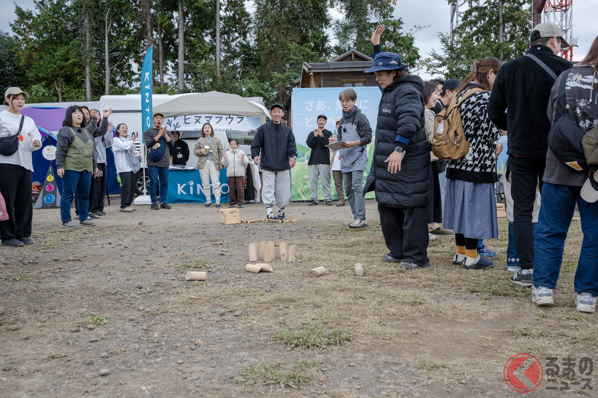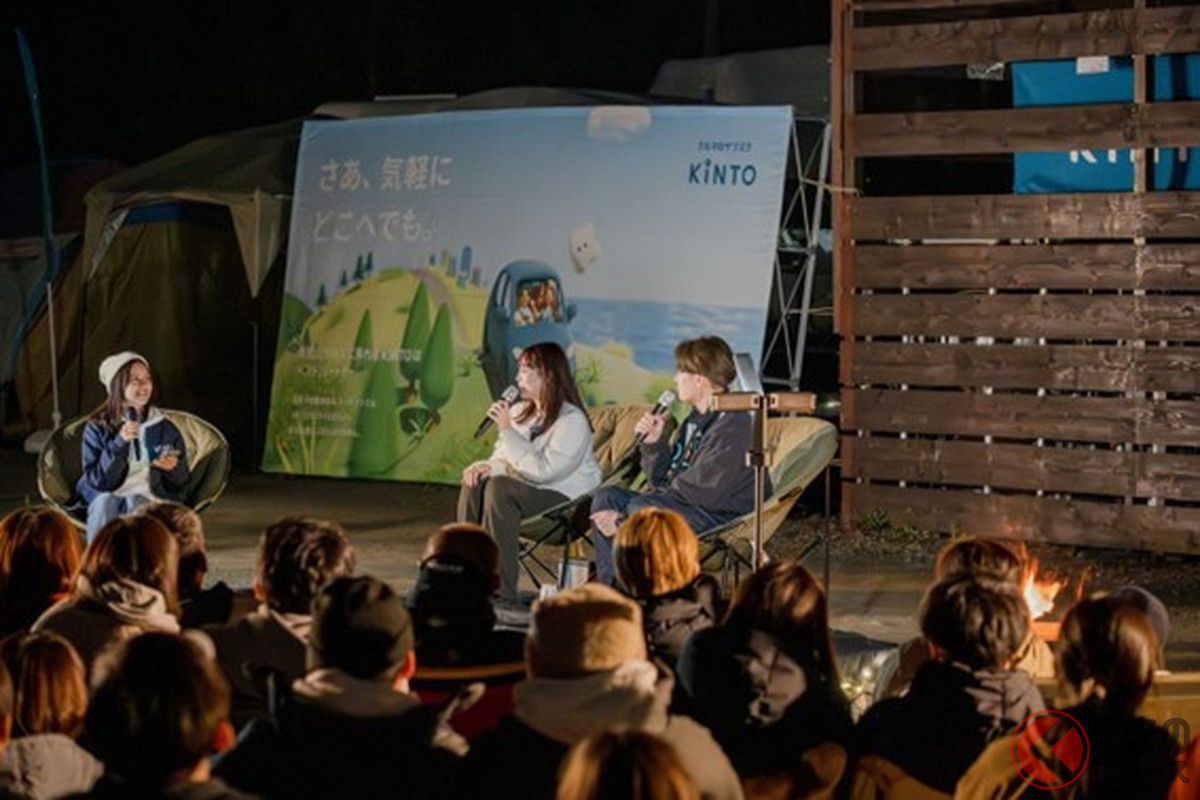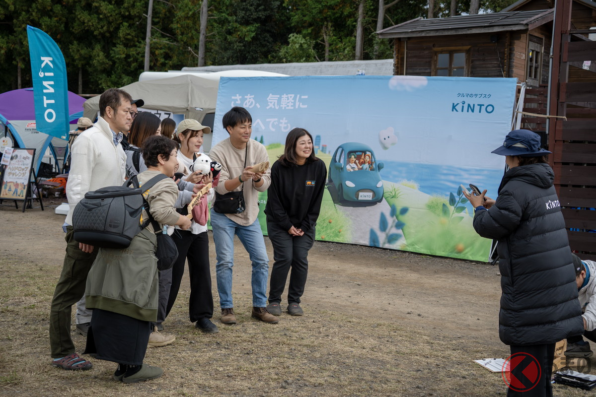 トヨタ車のサブスクなどを展開する「KINTO」が2025年11月初旬、静岡県富士市にある「富士見の丘オートキャンプ場」で2日間にわたって「モビキャン」を開催しました。アウトドア系YouTuberのヒヌマフウフとコラボし、トークショーや抽選会、モルック大会などを実施。参加者はクルマと共に週末を満喫しました。