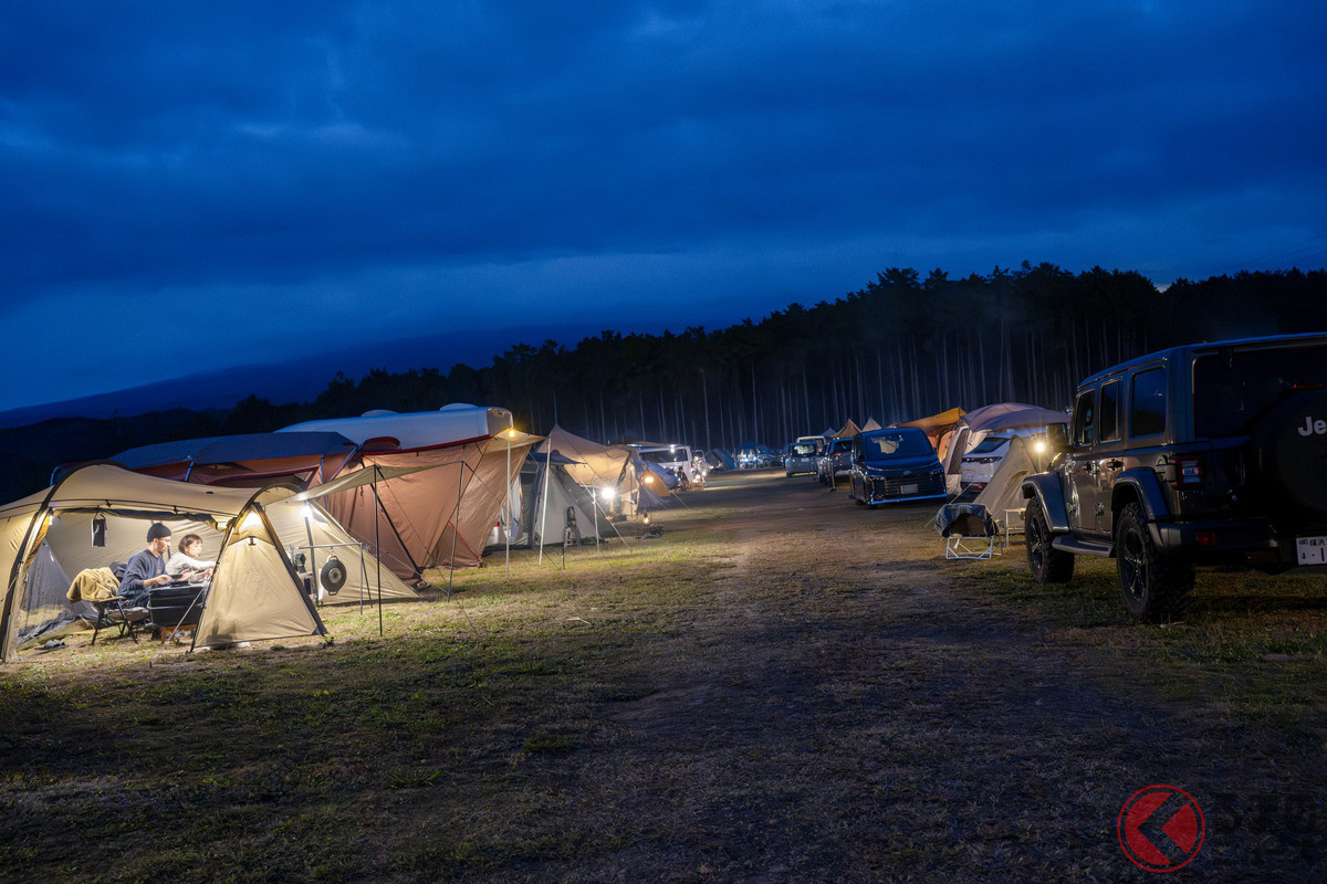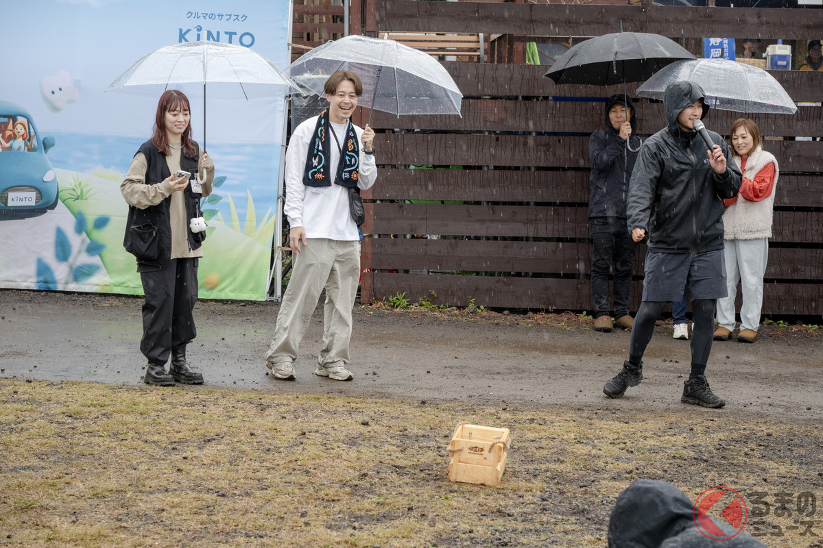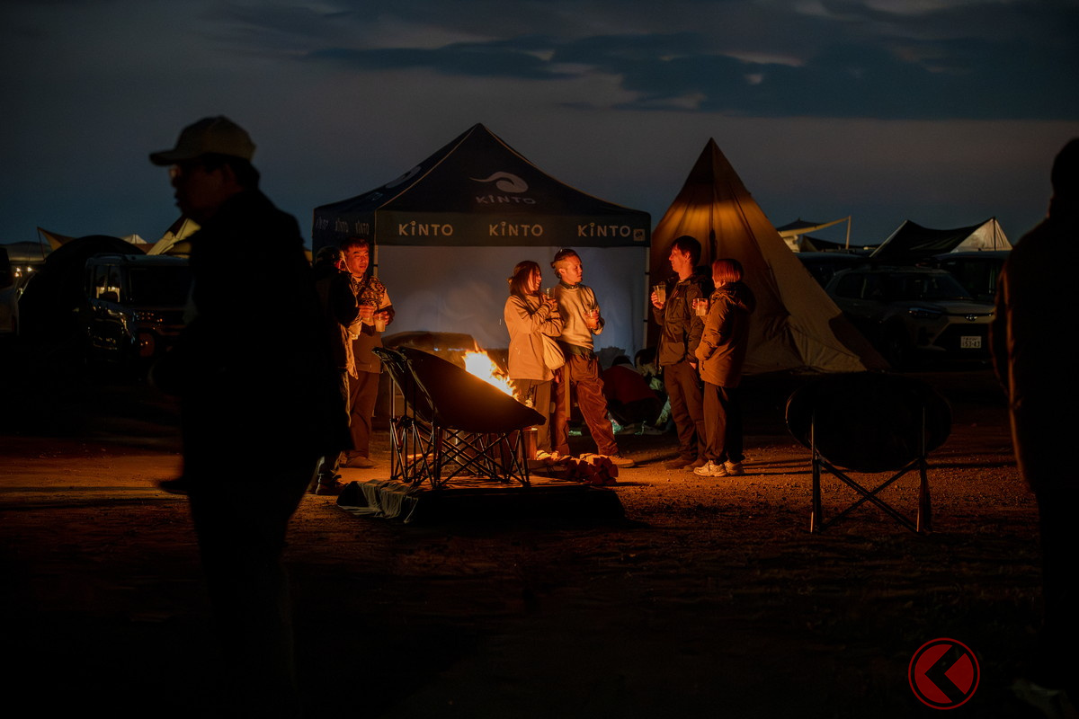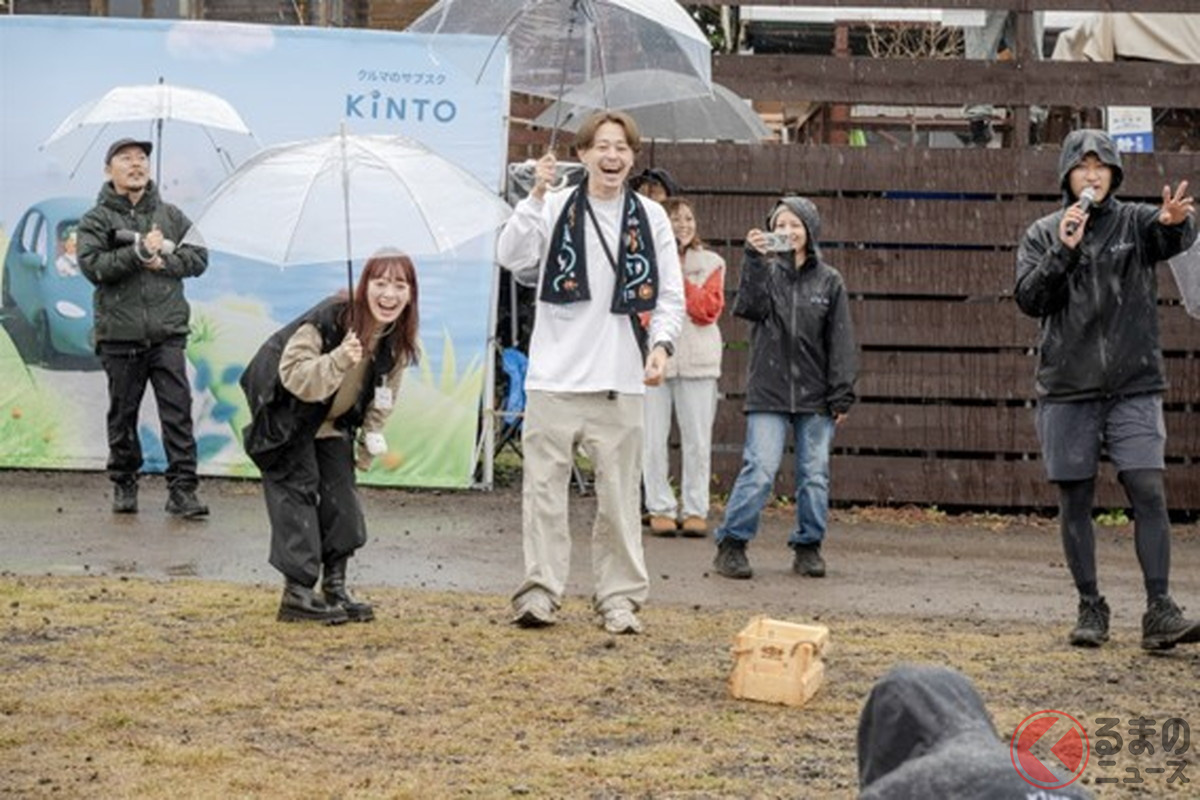 トヨタ車のサブスクなどを展開する「KINTO」が2025年11月初旬、静岡県富士市にある「富士見の丘オートキャンプ場」で2日間にわたって「モビキャン」を開催しました。アウトドア系YouTuberのヒヌマフウフとコラボし、トークショーや抽選会、モルック大会などを実施。参加者はクルマと共に週末を満喫しました。
