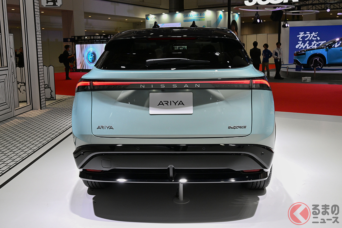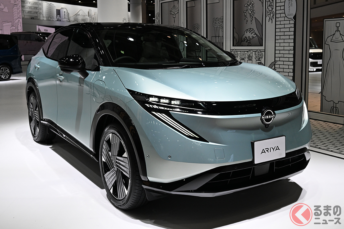 「ジャパンモビリティショー2025」で初披露された日産「アリア」のマイナーチェンジモデル。最大の見どころは、新型「リーフ」と共通デザインを採用した「新顔」ですが、実はほかにも大きく進化したポイントがあります。