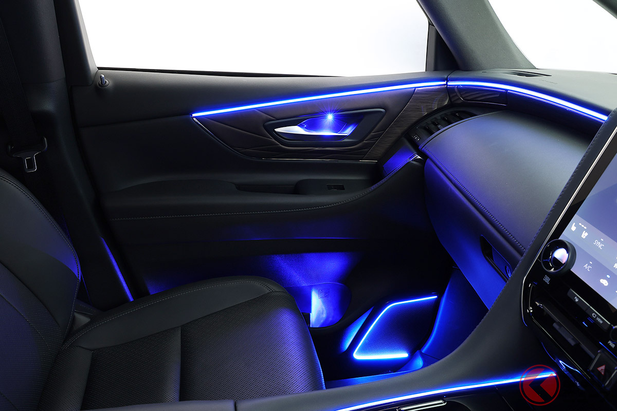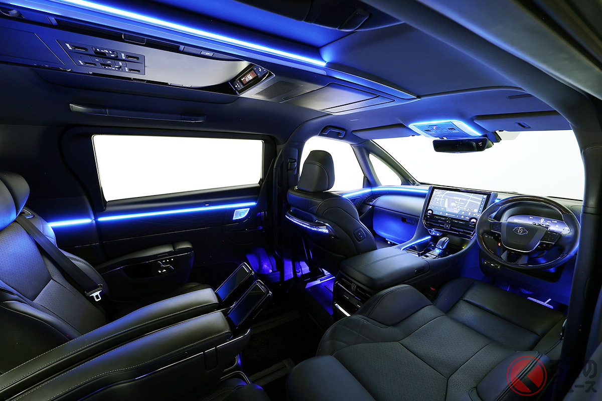 トヨタ最新「アルファード」がめっちゃ光る「斬新イルミネーション」登場! 純正ライト“連動”でピカッと「選べる14色」が嬉しい! アルパインスタイル「新型アンビエントライト」がすごい!