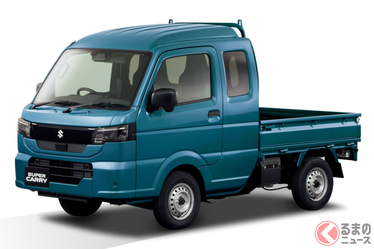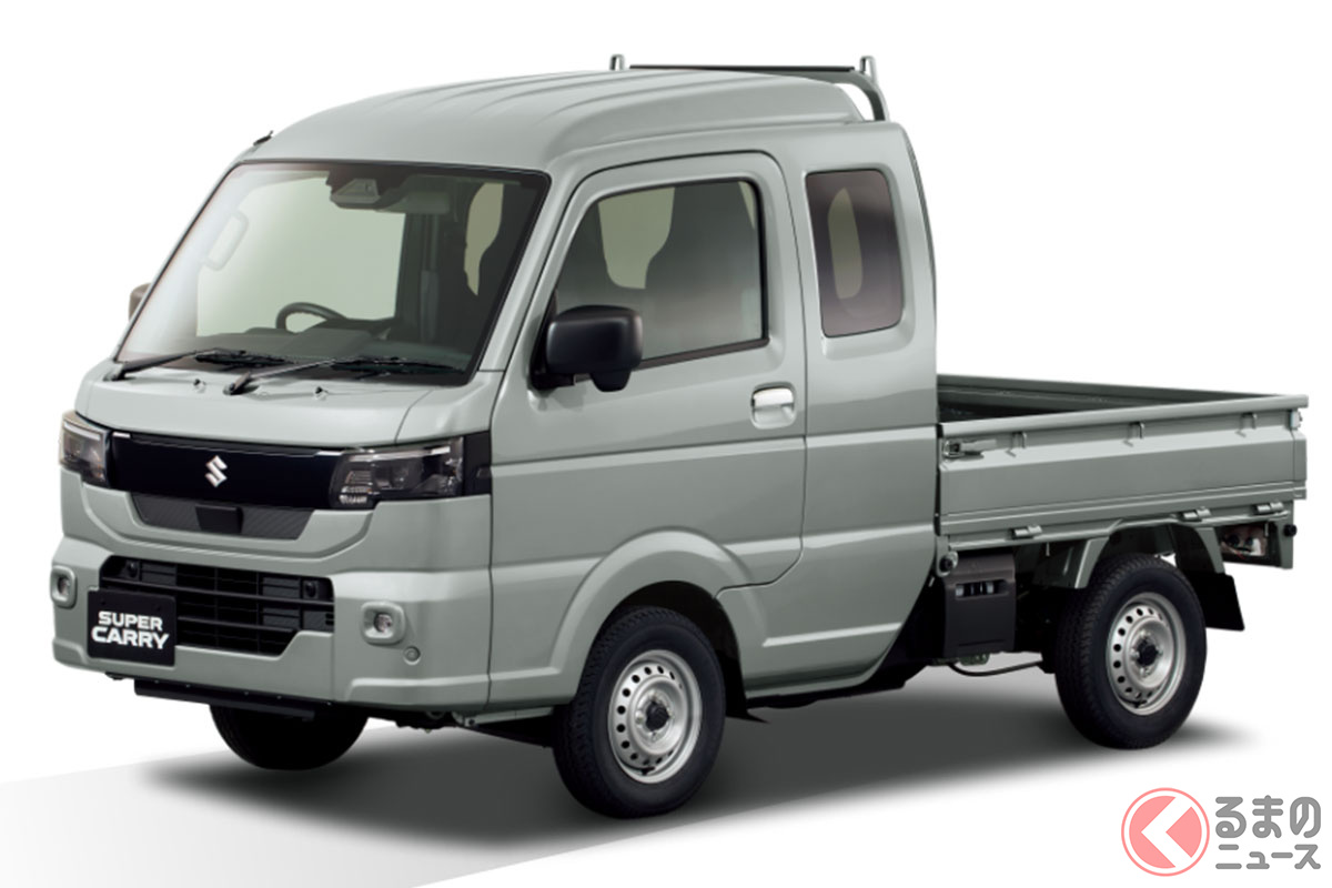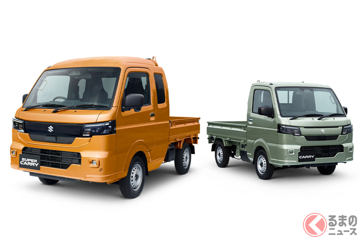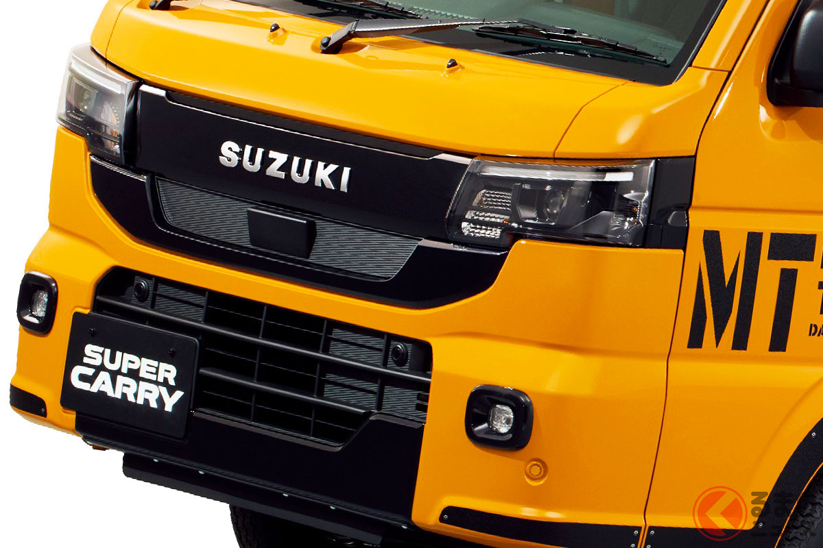 スズキ「“新”軽トラック」初公開に反響殺到! 「カッコいい!」「この顔すき」デザインが好評に! “ちょっとワル顔”に刷新&安全性強化した「新キャリイ」がスゴい!