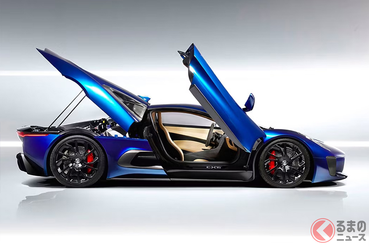 1.6リッターエンジン搭載で「800馬力超え」! 斬新「四駆スポーツカー」がスゴイ! メーカー初の“軽量ボディ”&ガバッと開く「斬新ドア」採用! 革新的な英国のジャガー「C‑X75」とは?
