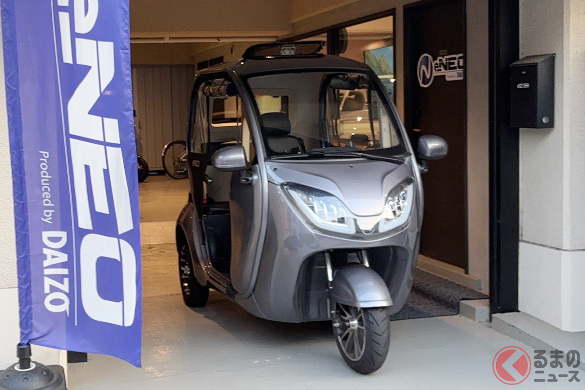 “注文殺到”の「3人乗りトライク」実車登場! 新車88万円で“めちゃ使える”スゴイ乗りもの!「大阪モーターショー」に“初展示”決定のタイゾー「NEOワン」&「NEOライト」とは!