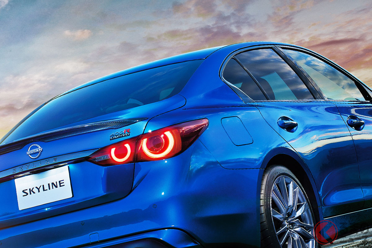 日産「”新”スカイライン」が凄い! “集大成”となる「400R Limited」は全面進化も価格は「約60万円値上げ」 GT-R譲りの「ワンガンブルー」もある「特別限定車」とは
