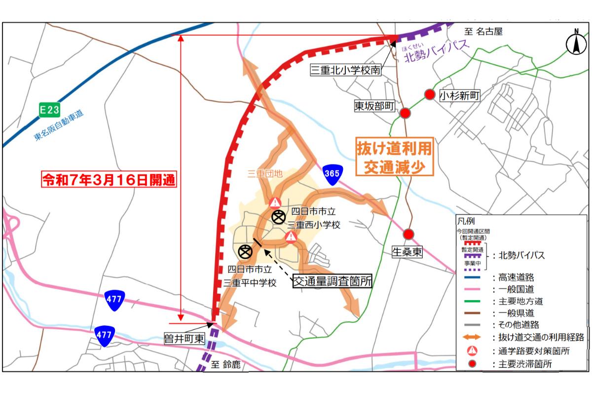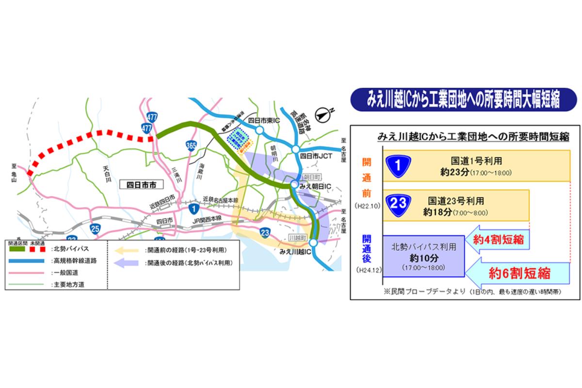 国土交通省は、国道1号「北勢バイパス」における開通区間の交通状況および開通効果をまとめたレポートを公表しました。