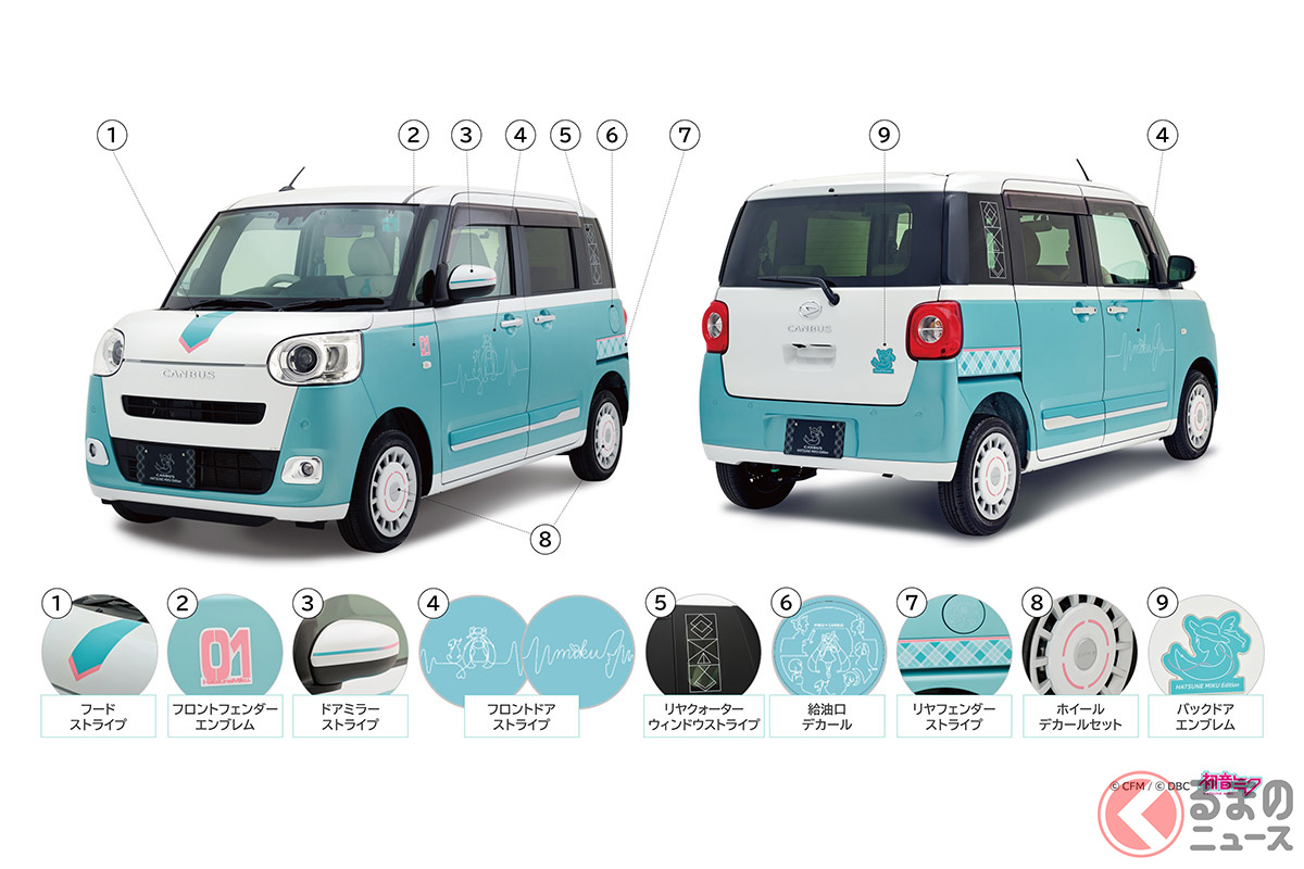 ダイハツ「ムーヴキャンバス」“初音ミク エディション”発売! 内外装まるごとスペシャル仕様の用品パッケージがスゴい!「ミクキャンバス2」フルセットで25万円