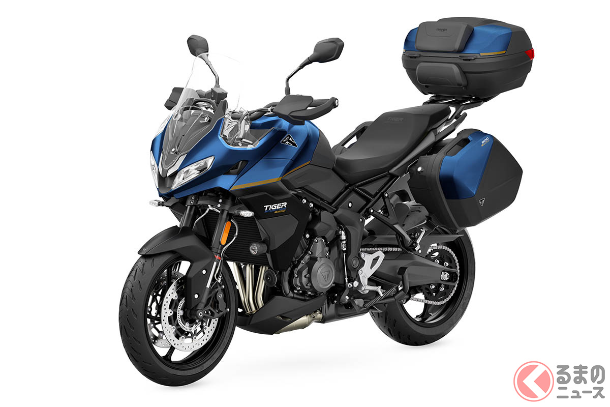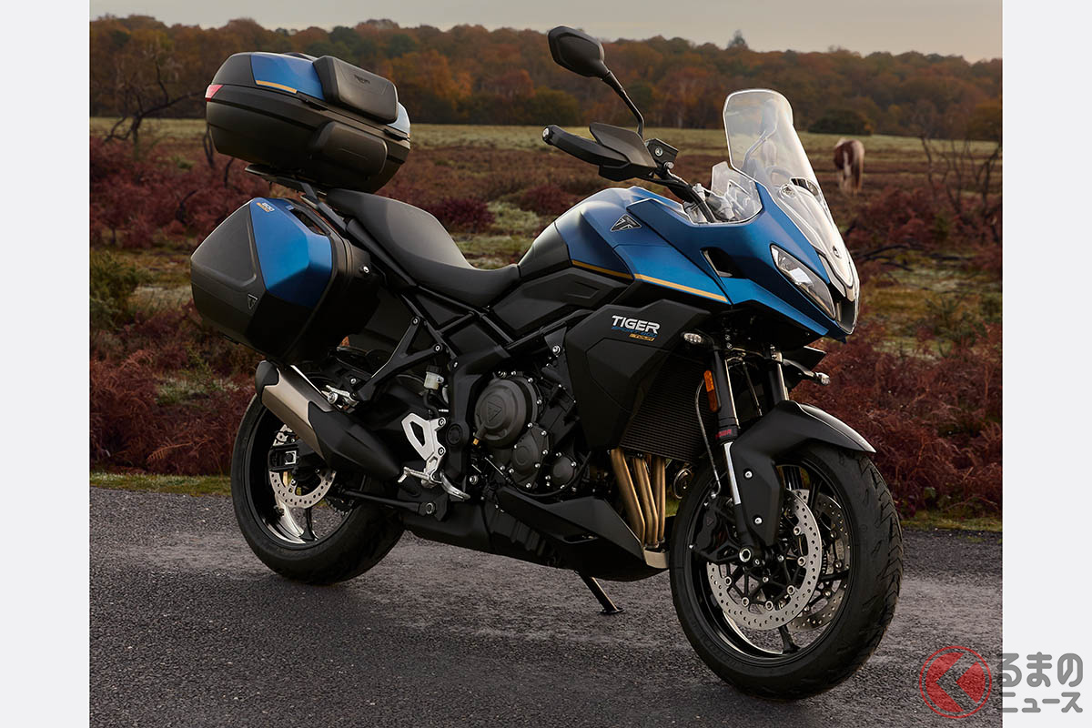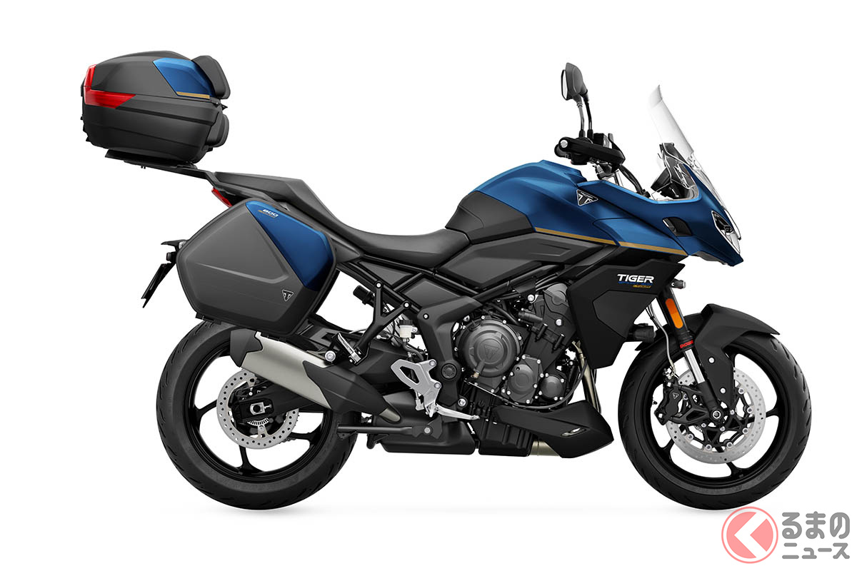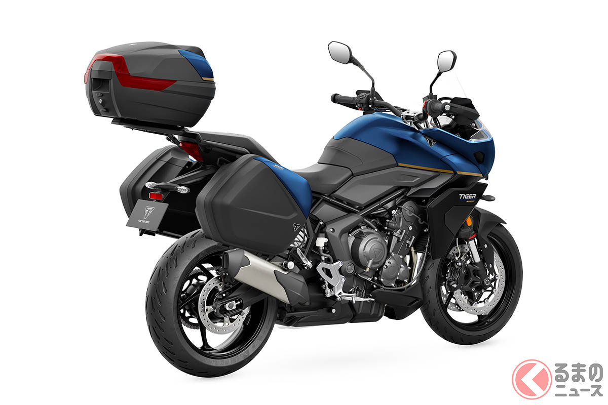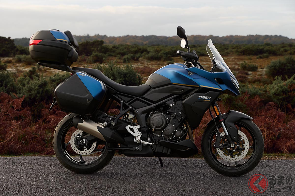 新車160万円! 「“新”スポーツツーリングモデル」発売! 115馬力の「3気筒エンジン」×106L“ラゲッジ”も搭載! 「長距離向き」なトライアンフ「TIGER SPORT 800 TOUR」登場