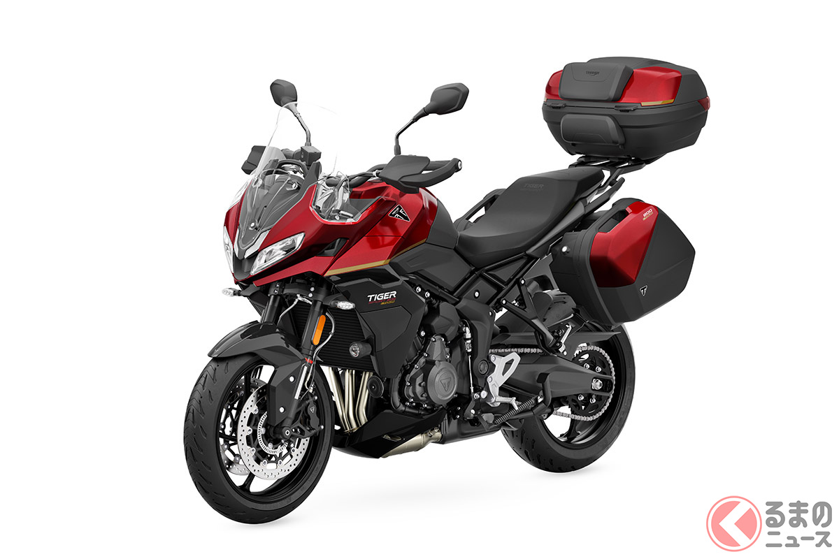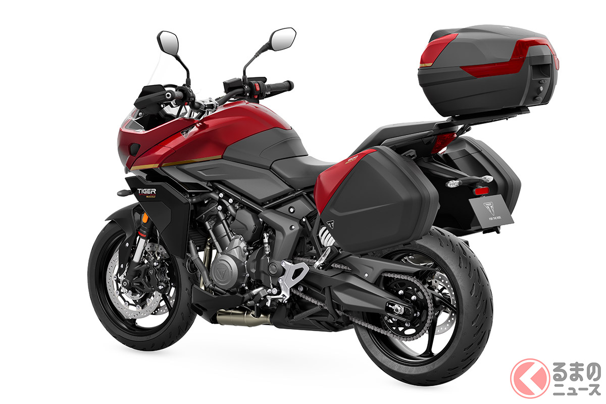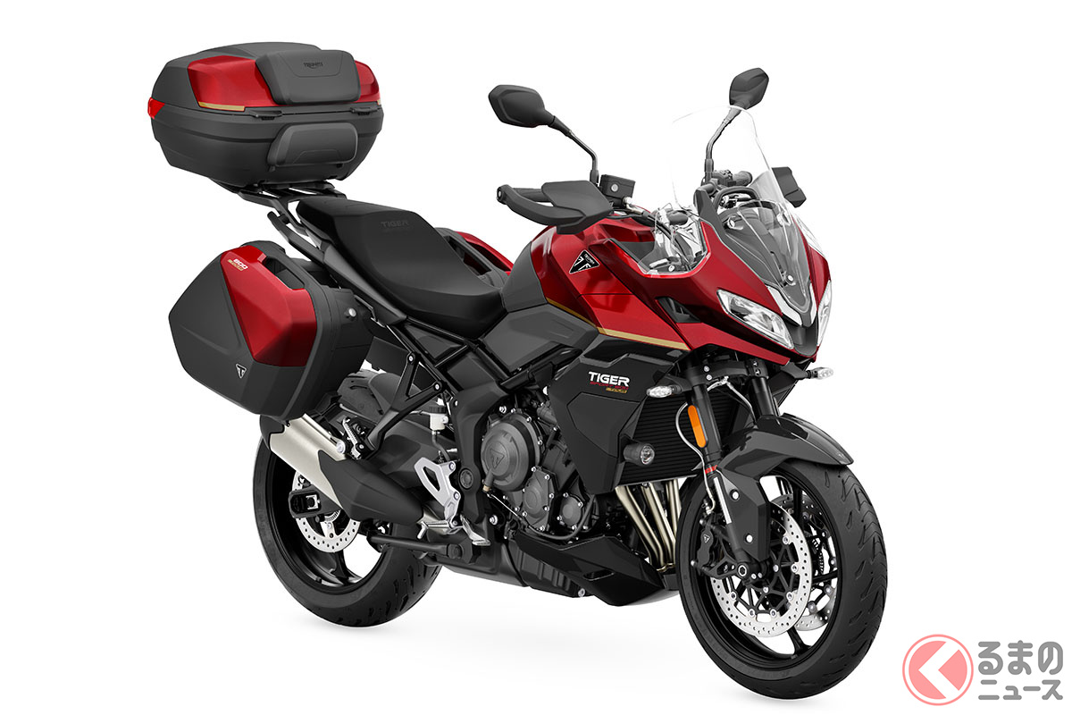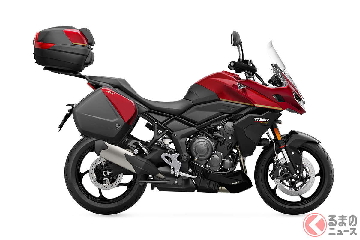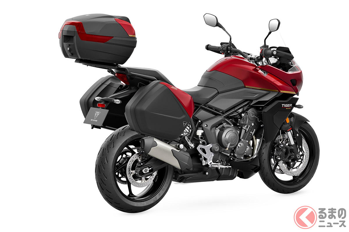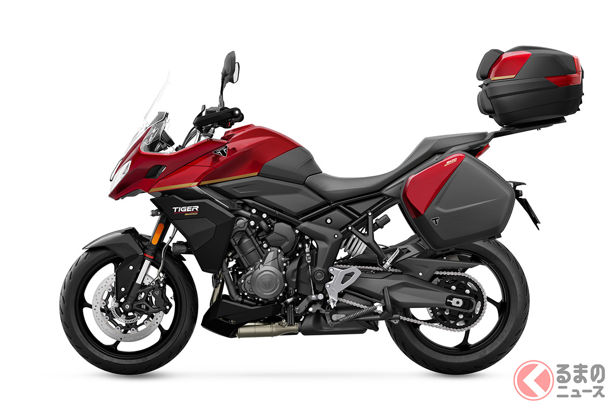 新車160万円! 「“新”スポーツツーリングモデル」発売! 115馬力の「3気筒エンジン」×106L“ラゲッジ”も搭載! 「長距離向き」なトライアンフ「TIGER SPORT 800 TOUR」登場