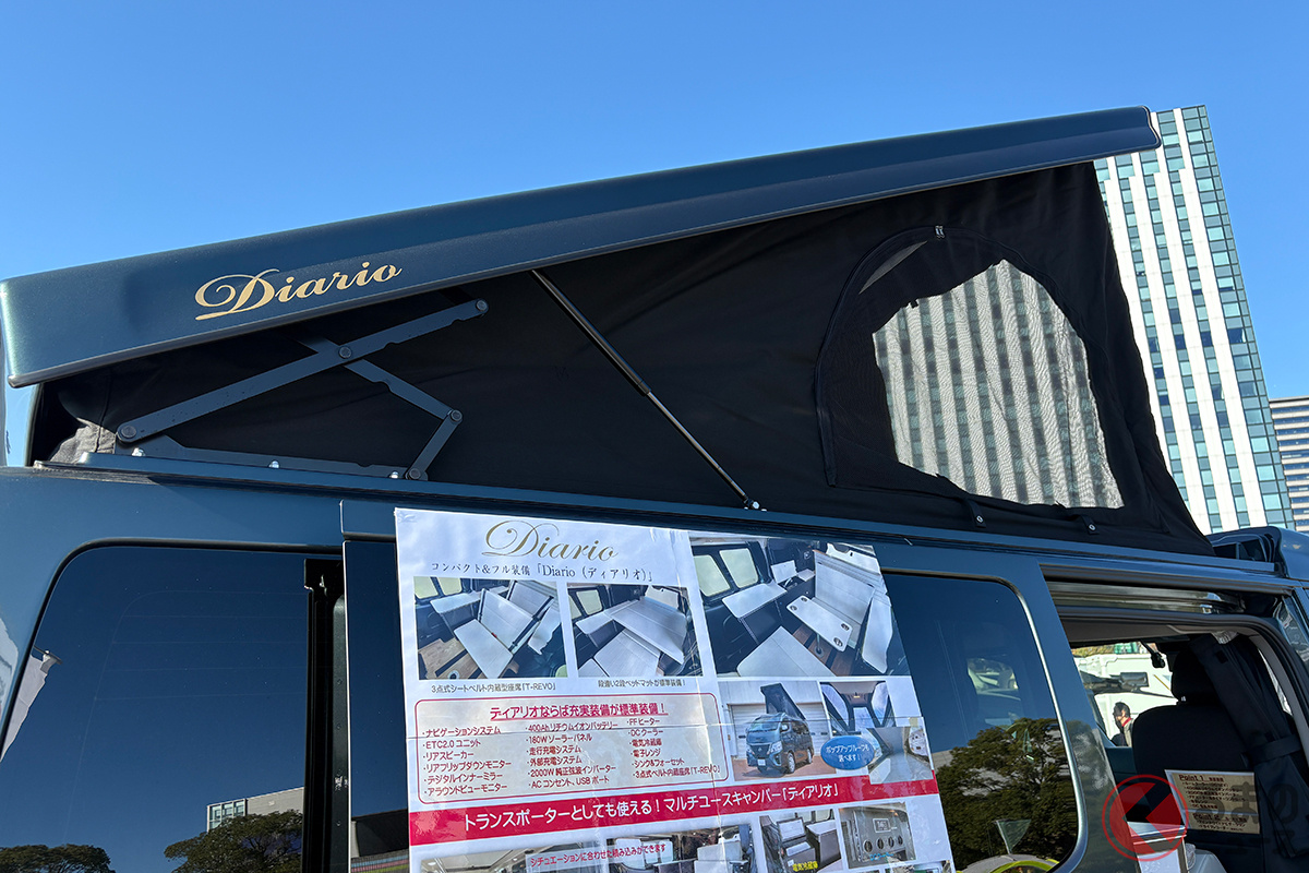 お台場キャンピングカーフェア 2025にて、日産「キャラバン」をベースとした新型キャンピングカー「ディアリオ ポップ」を実車展示。どのようなモデルなのでしょうか。