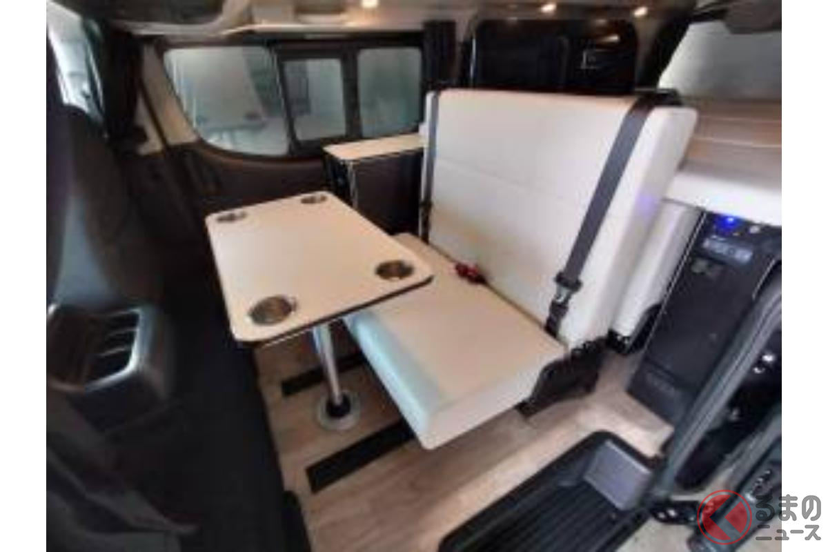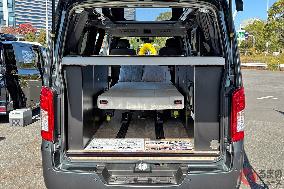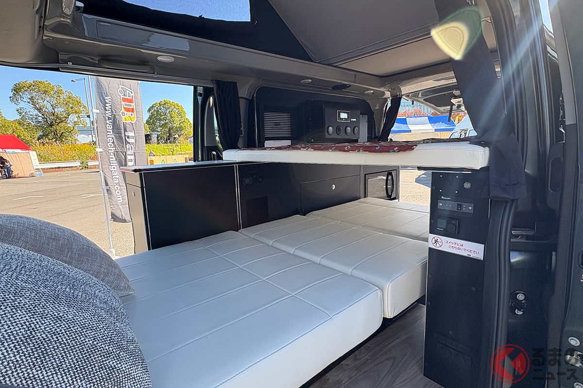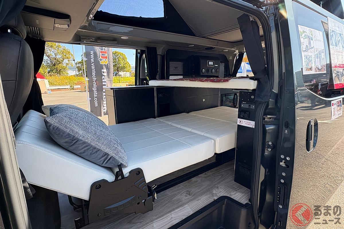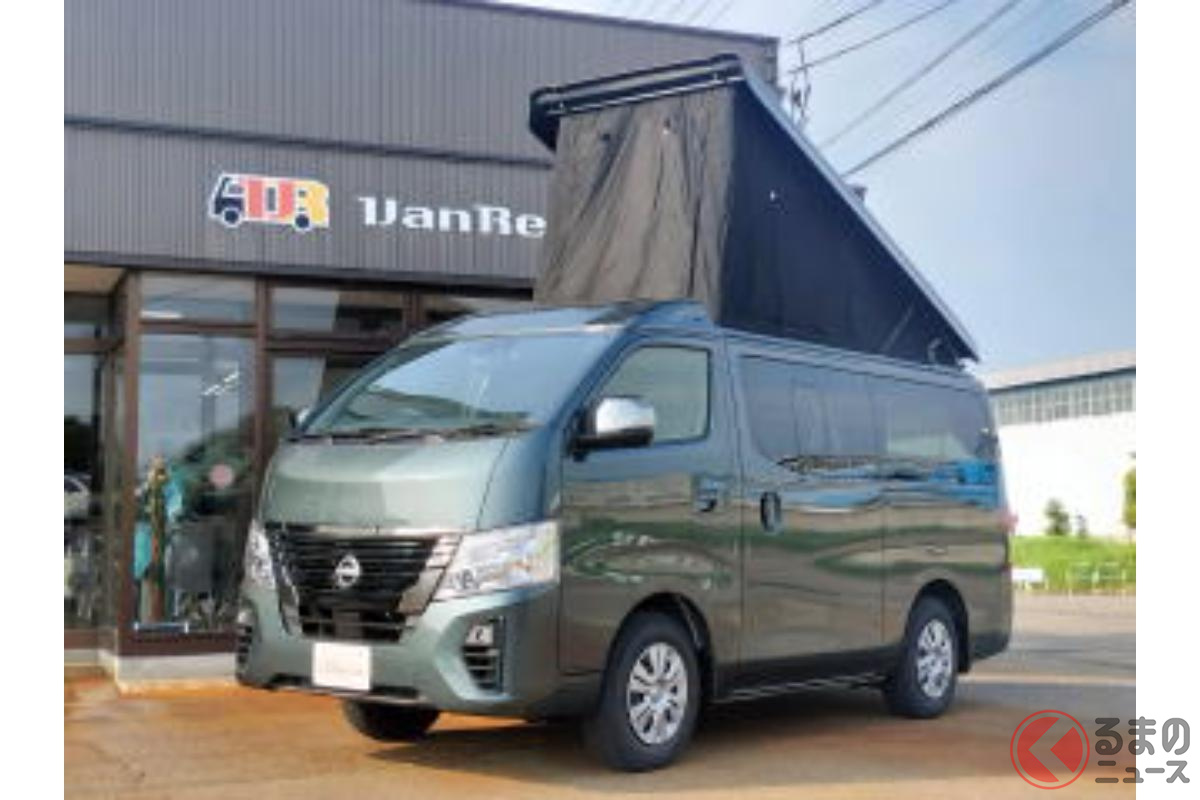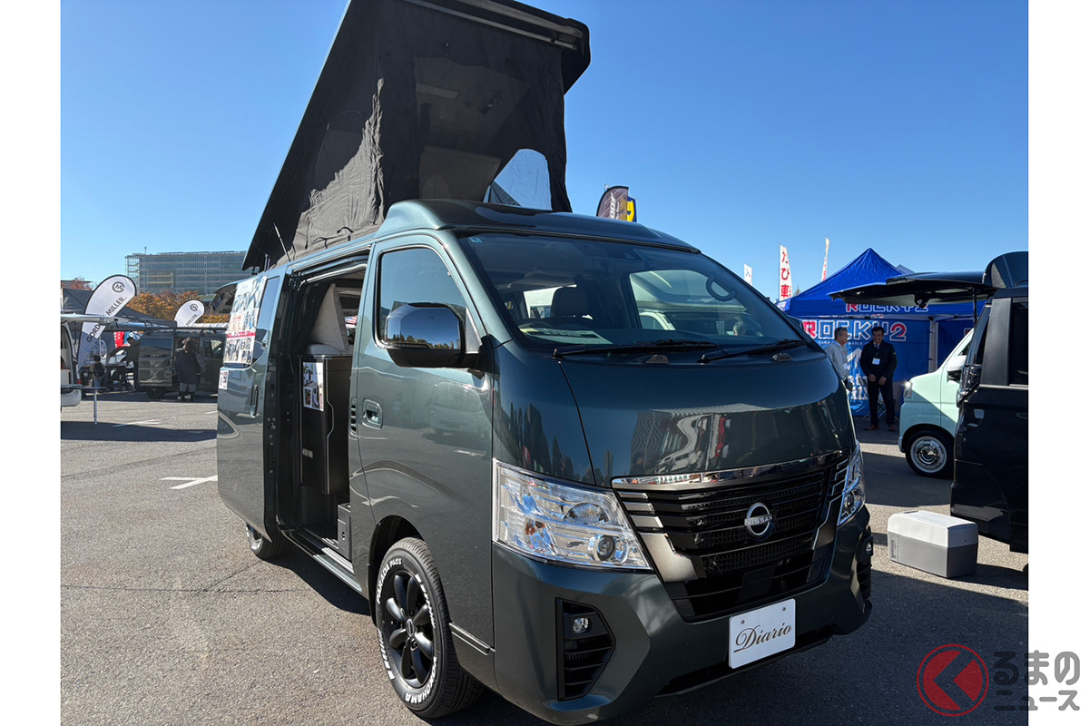 日産の「“5人寝られる”」スゴいバン! カクカクデザインもカッコいい「ひろびろ車中泊モデル」! バンテック新潟の「キャラバン」キャンパー「新型ディアリオ ポップ」に注目