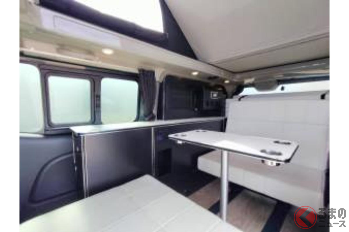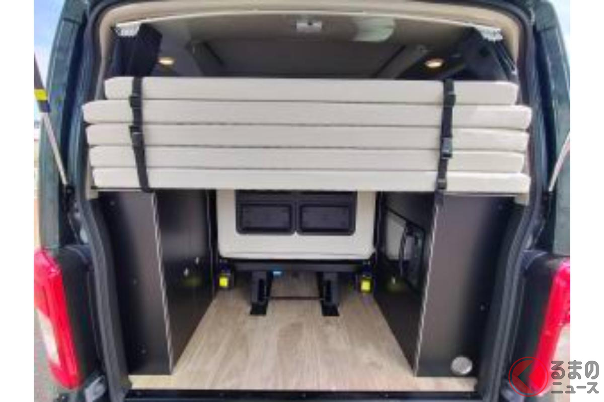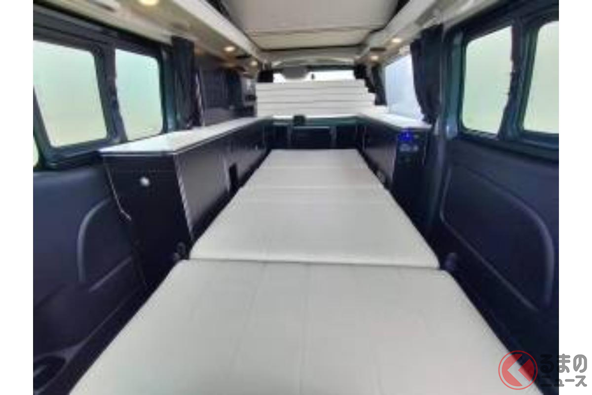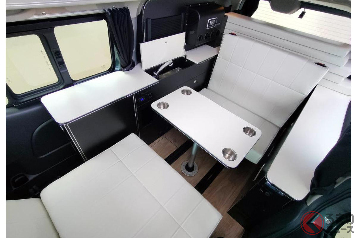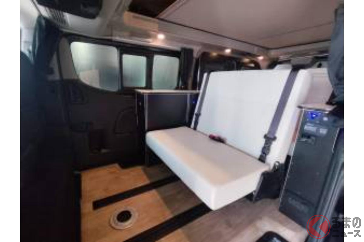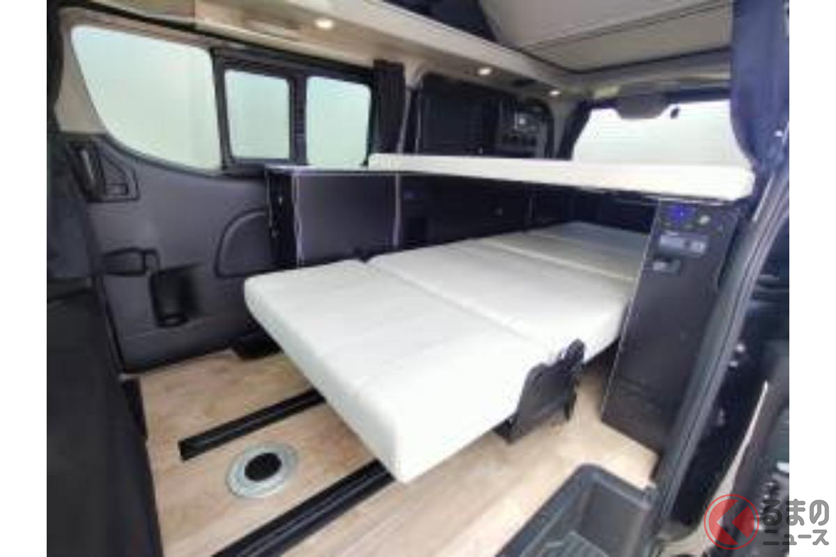 日産の「“5人寝られる”」スゴいバン! カクカクデザインもカッコいい「ひろびろ車中泊モデル」! バンテック新潟の「キャラバン」キャンパー「新型ディアリオ ポップ」に注目