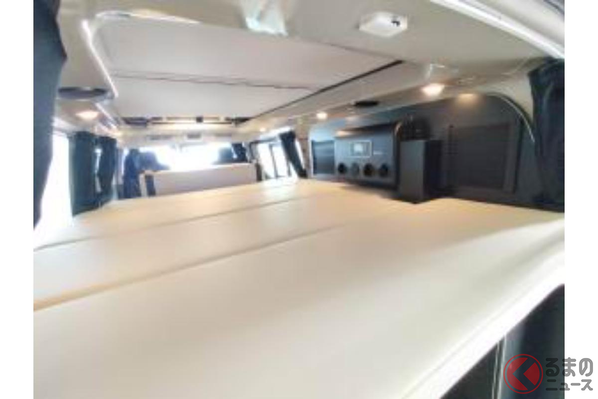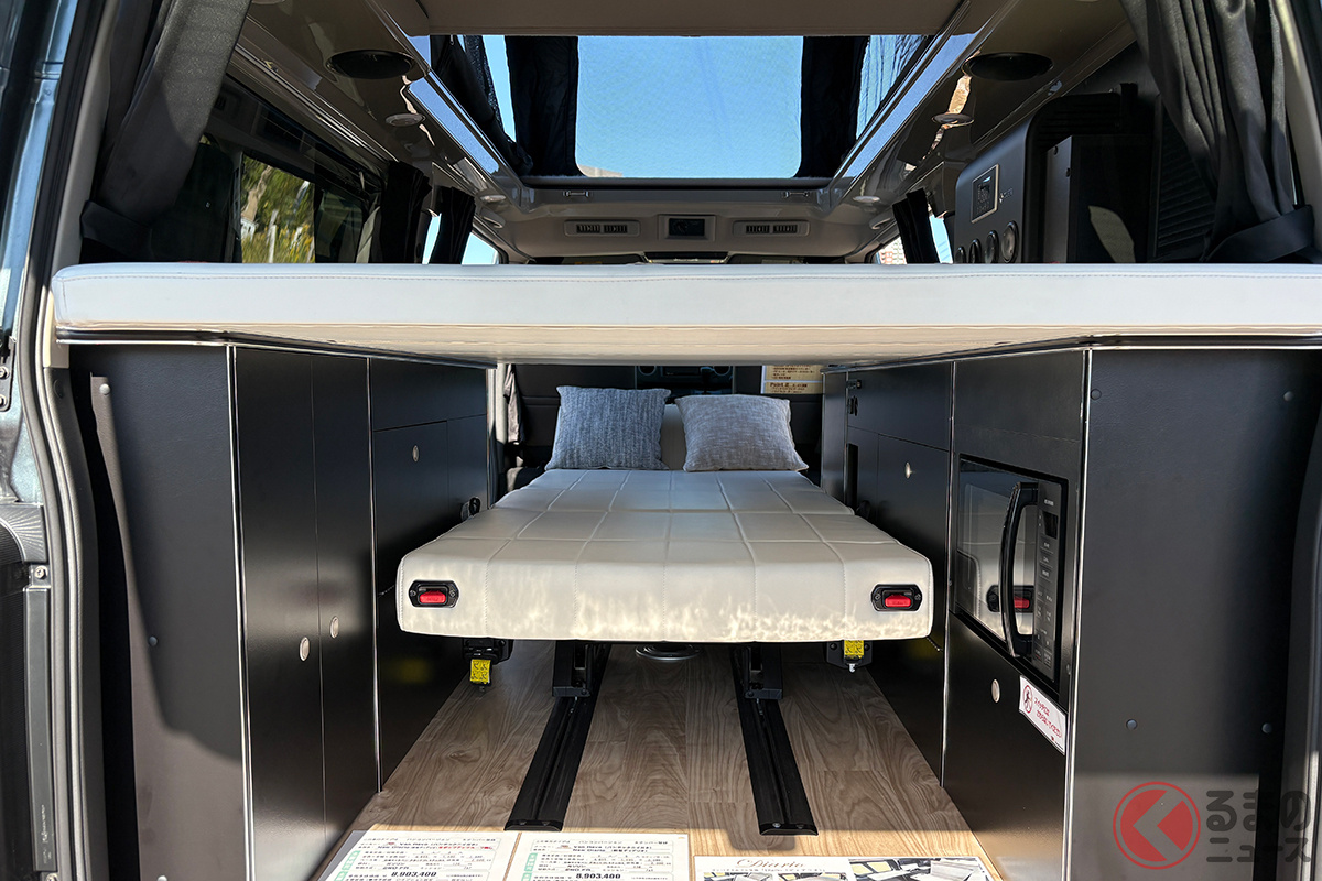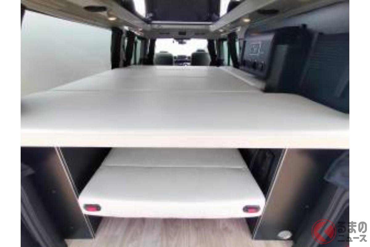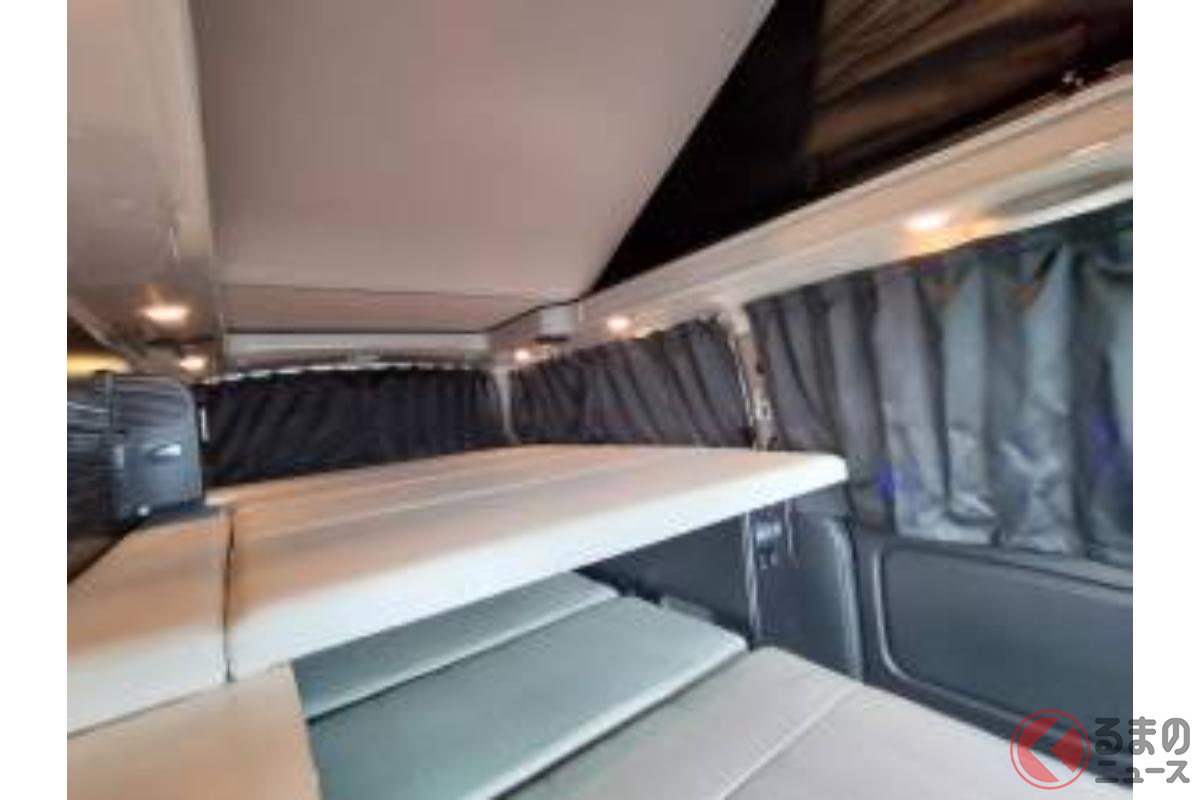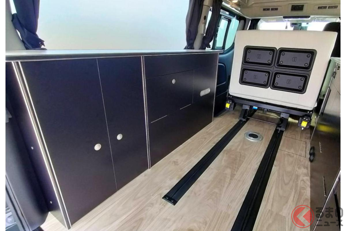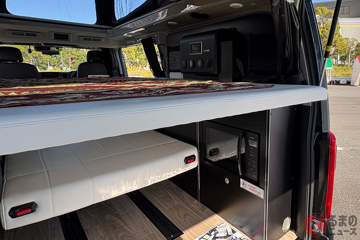 日産の「“5人寝られる”」スゴいバン! カクカクデザインもカッコいい「ひろびろ車中泊モデル」! バンテック新潟の「キャラバン」キャンパー「新型ディアリオ ポップ」に注目