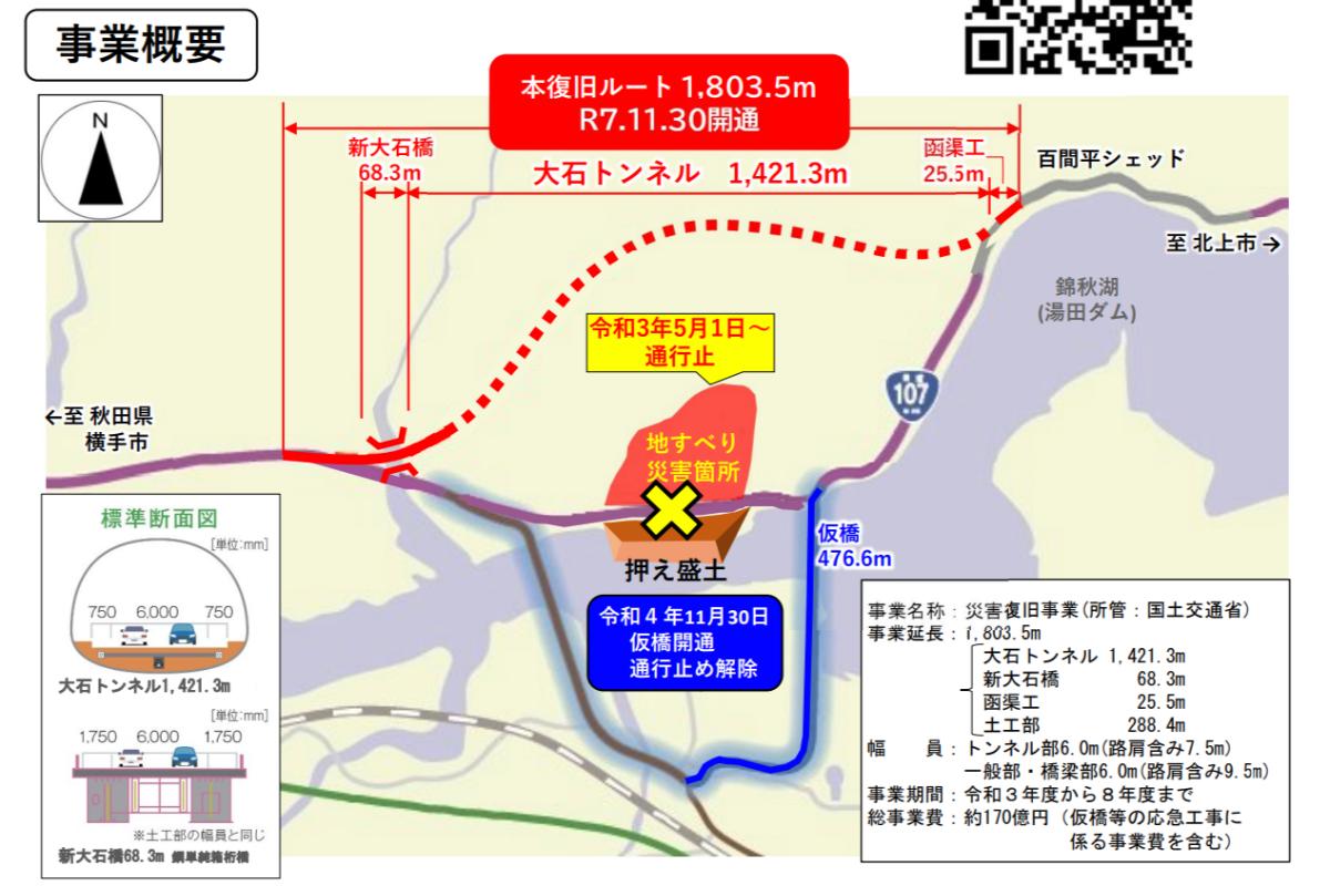 2025年11月30日、岩手県西和賀町で工事が進められていた国道107号「大石トンネル」が開通しました。