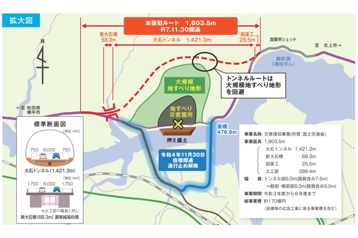 東北の「日本海〜太平洋直通ルート」が復旧! 大規模地すべりで“寸断”も「新しいトンネル」開通で復活 「Uの字迂回」解消した国道107号 大石トンネル 11月末に一般開放