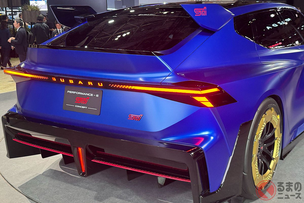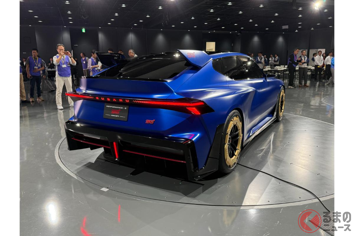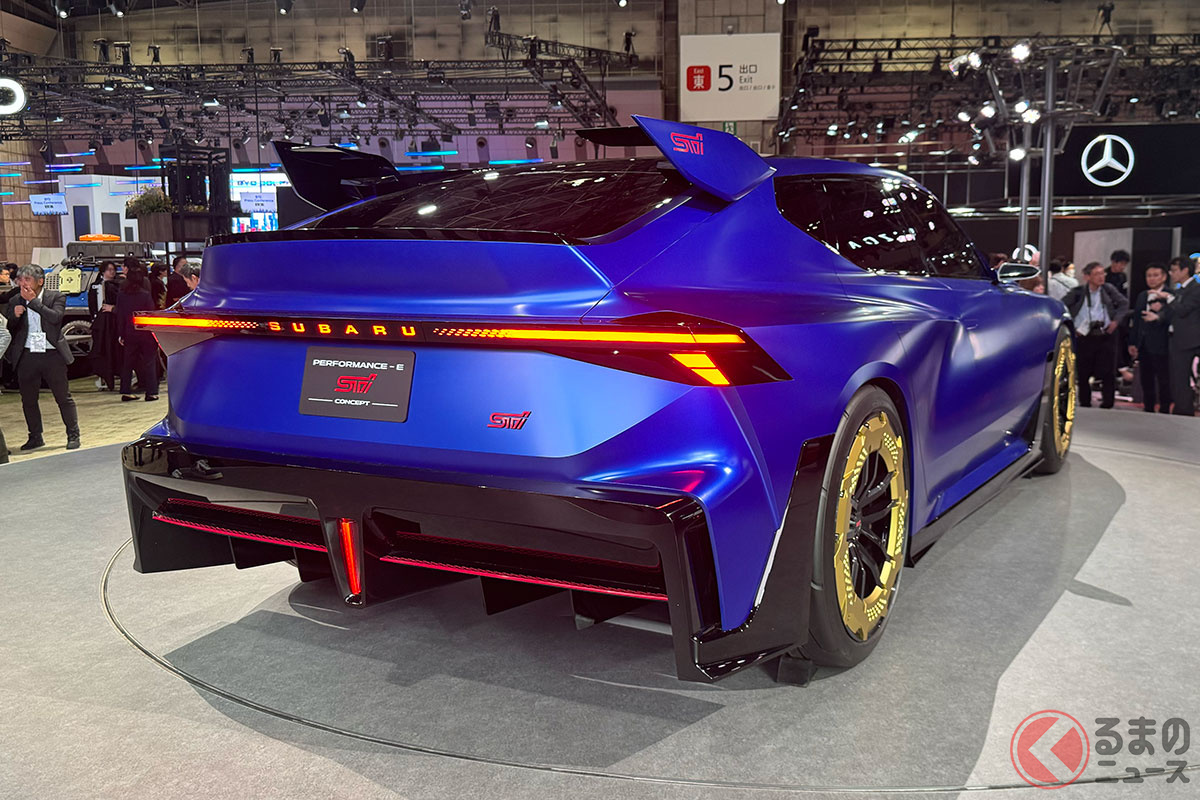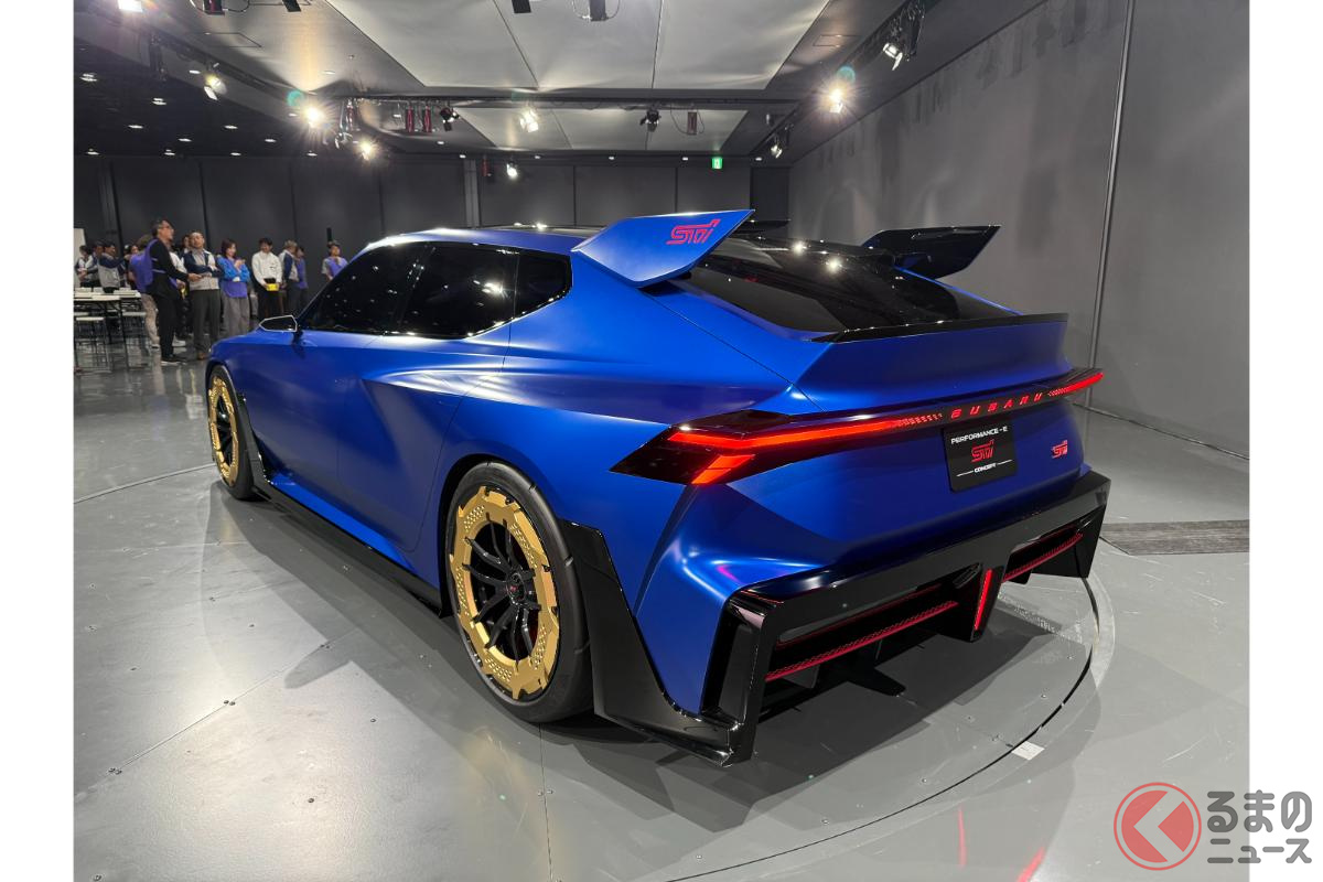スバル新「“4WD”スポーツハッチ」が凄い! 伝統の「金ホイール×巨大ウイング」採用! まさに「“毎日乗れる”スーパーカー」な斬新“パフォーマンスE”がこだわったデザインとは!