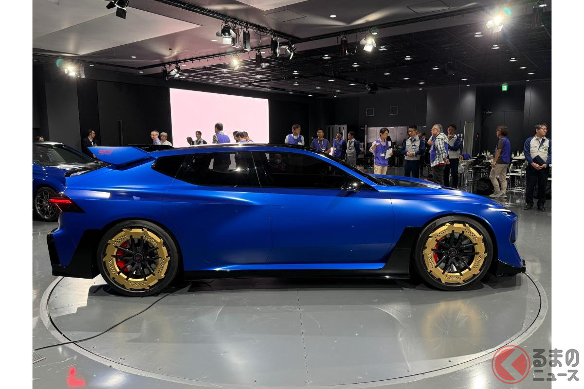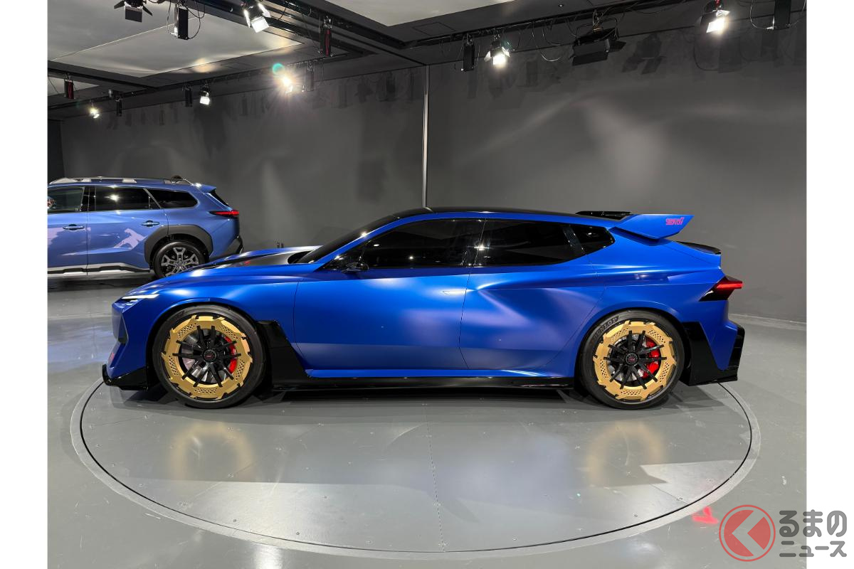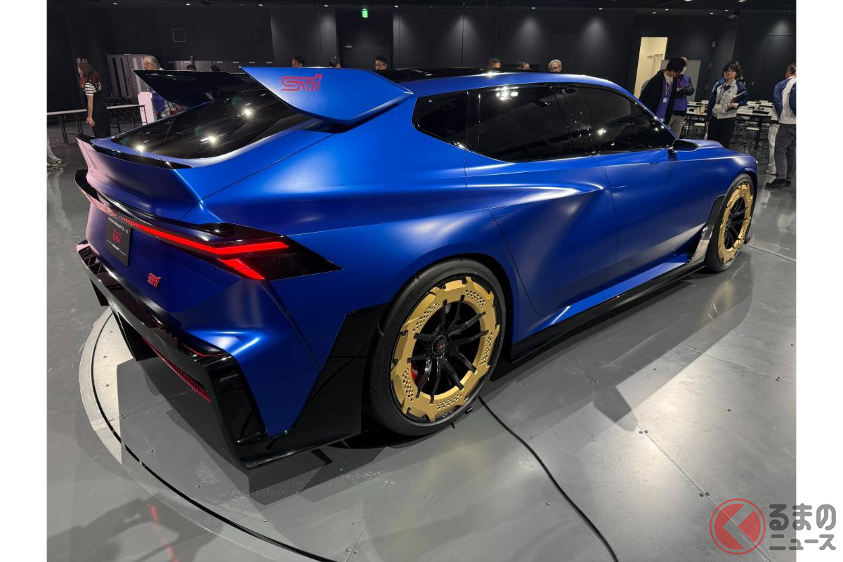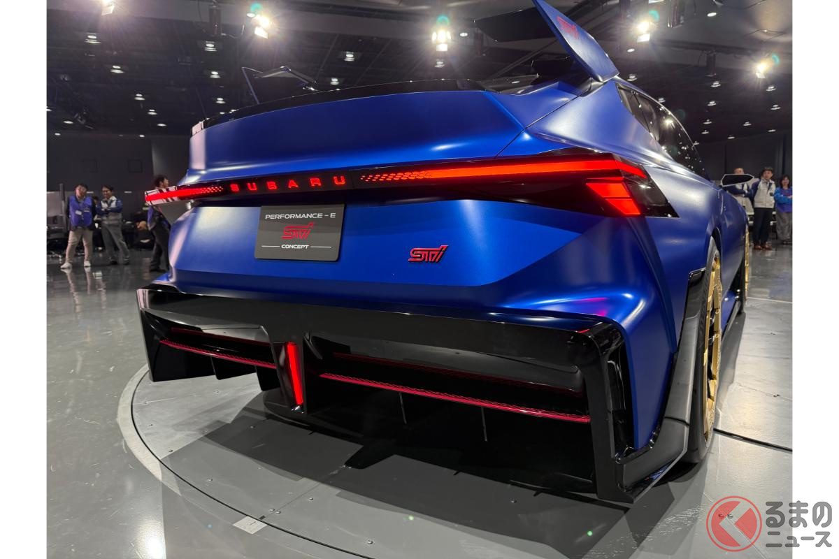 スバル新「“4WD”スポーツハッチ」が凄い! 伝統の「金ホイール×巨大ウイング」採用! まさに「“毎日乗れる”スーパーカー」な斬新“パフォーマンスE”がこだわったデザインとは!