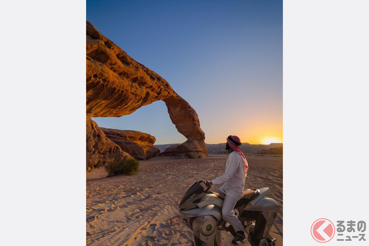カワサキ「斬新4脚モビリティ」製品化! 本格悪路性能×「バイク技術」が融合した「スゴいマシン」35年にデビュー! 2030年「サウジアラビア・リヤド万博」会場で採用目指す