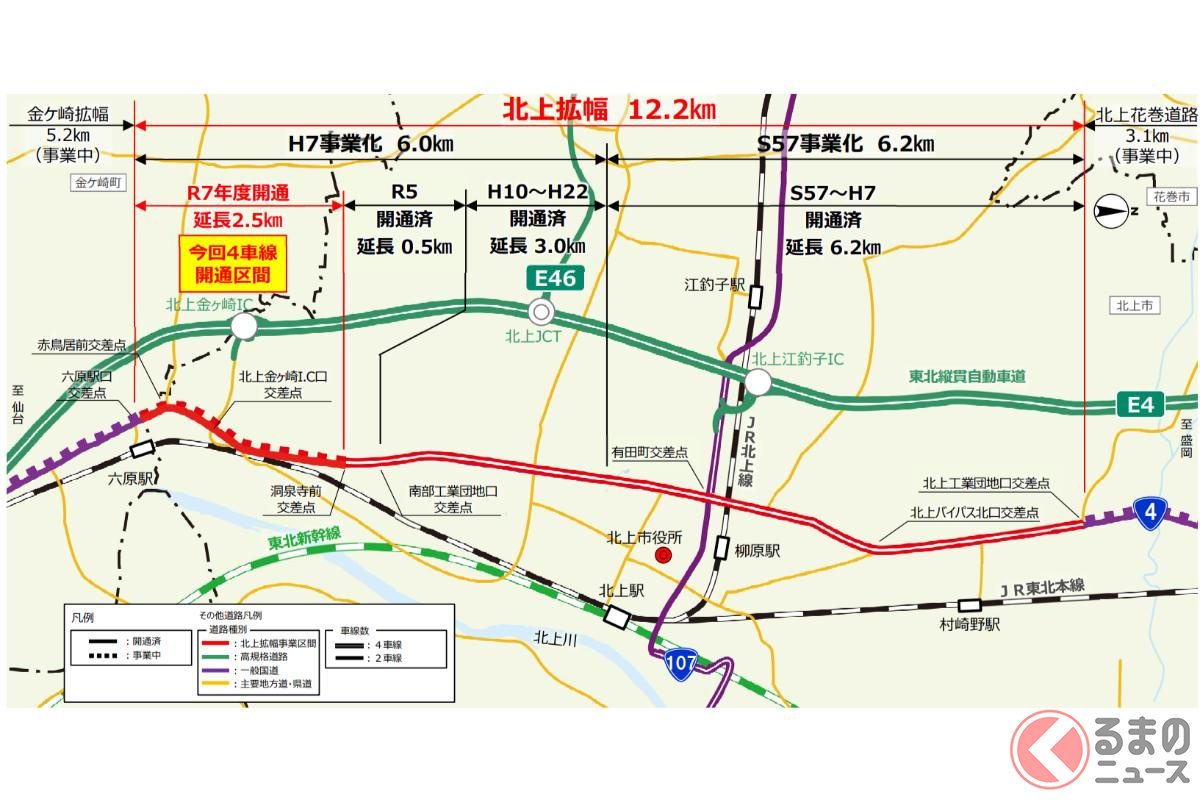 国道4号「12kmもの超ロング4車線化」43年越しに開通! 冬季の「超ノロノロ大渋滞」が一気に解決へ! 「交通の要衝」通過する“東北の大動脈”北上拡幅 6日に全通