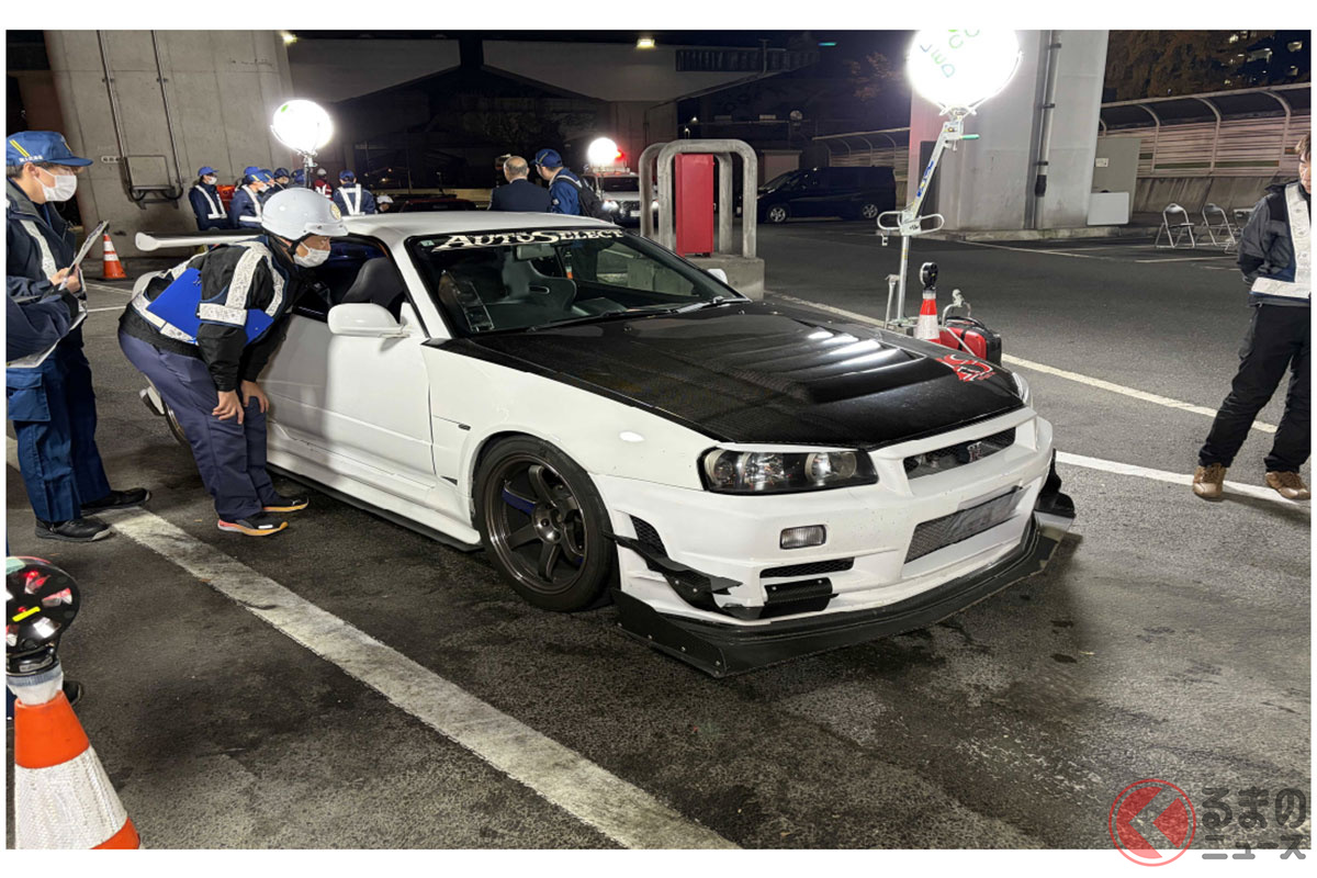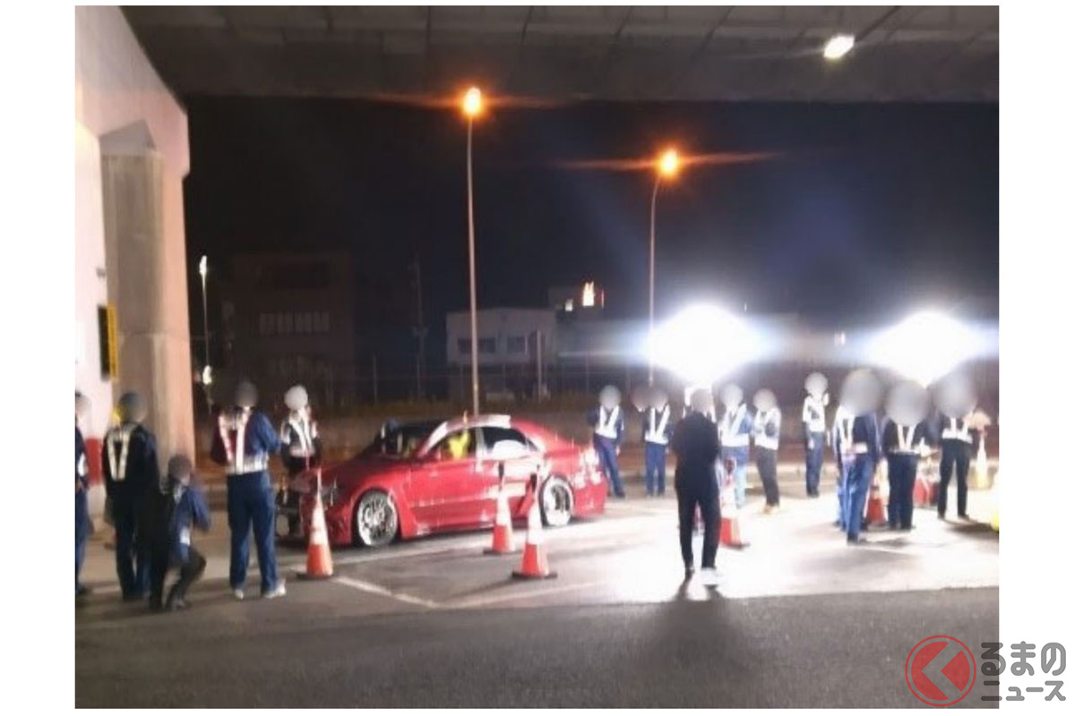 国交省が「車を直しなさい!」怒りの命令! 「東大阪PA」に集結の“超・迷惑車両7台”をその場で検挙! 「爆音」「ハミタイ」「フルスモ」の“不正改造車”を一斉摘発 大阪