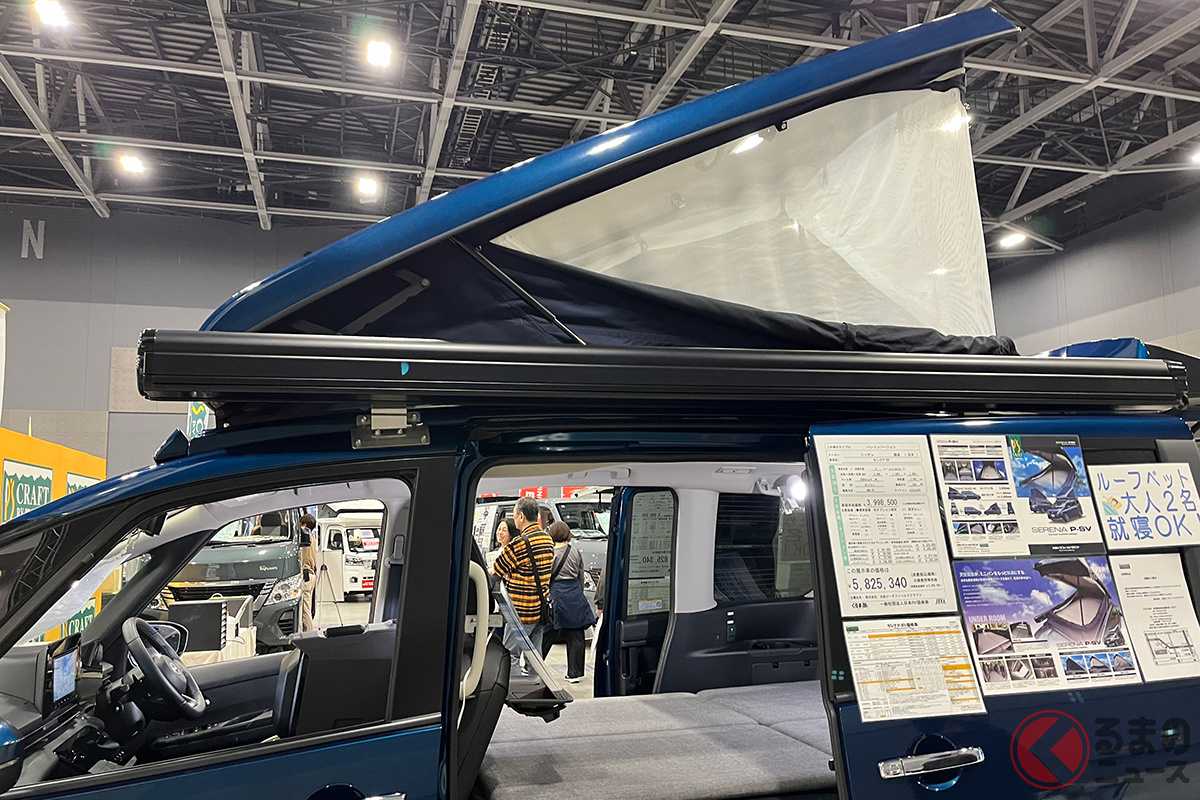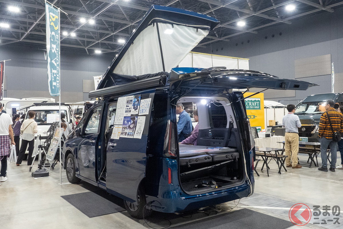 日産ピーズフィールドクラフトは、人気ミニバンの日産「セレナ」をベースにしたキャンピングカーを「福岡キャンピングカーショー2025」で展示しました。