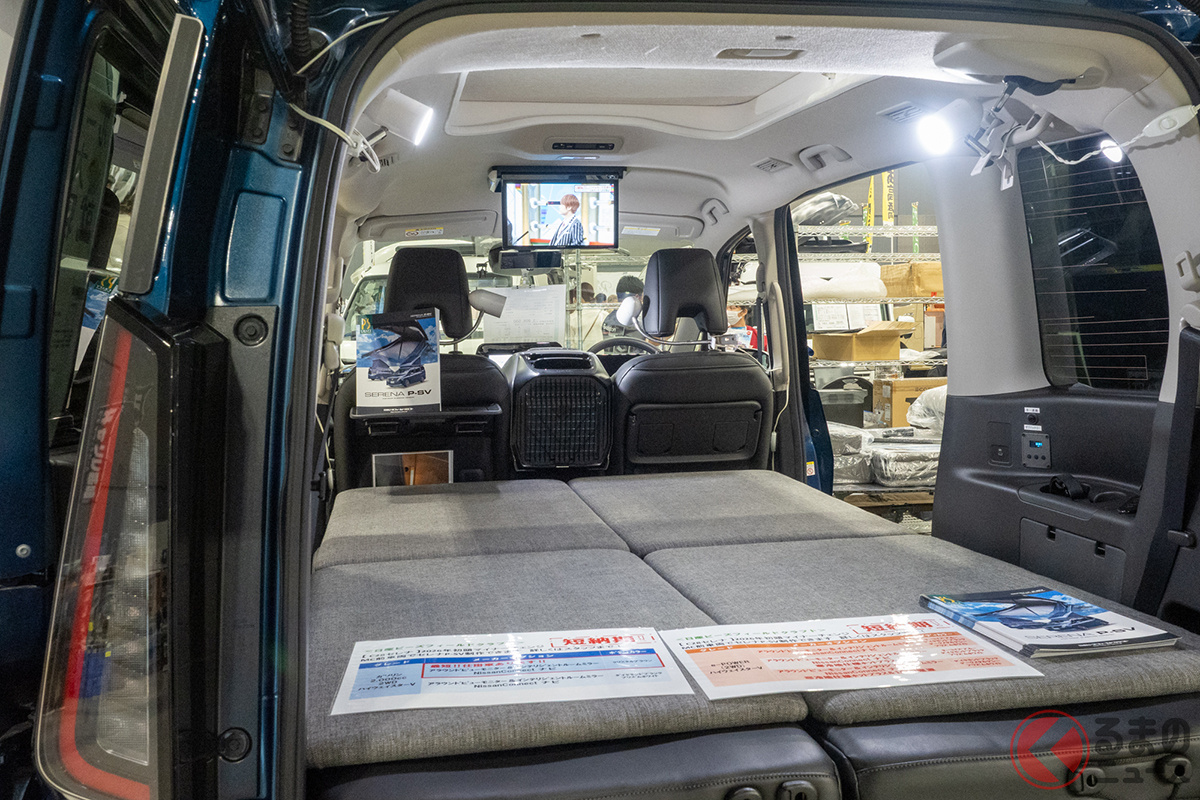 日産の「“大人4人寝られる”ミドルクラスミニバン」がスゴい! 全長4.7m級「ちょうどイイサイズ」で全高は「3m」まで拡大!? 普段づかいも便利すぎる車中泊モデル「セレナ P-SV」に注目